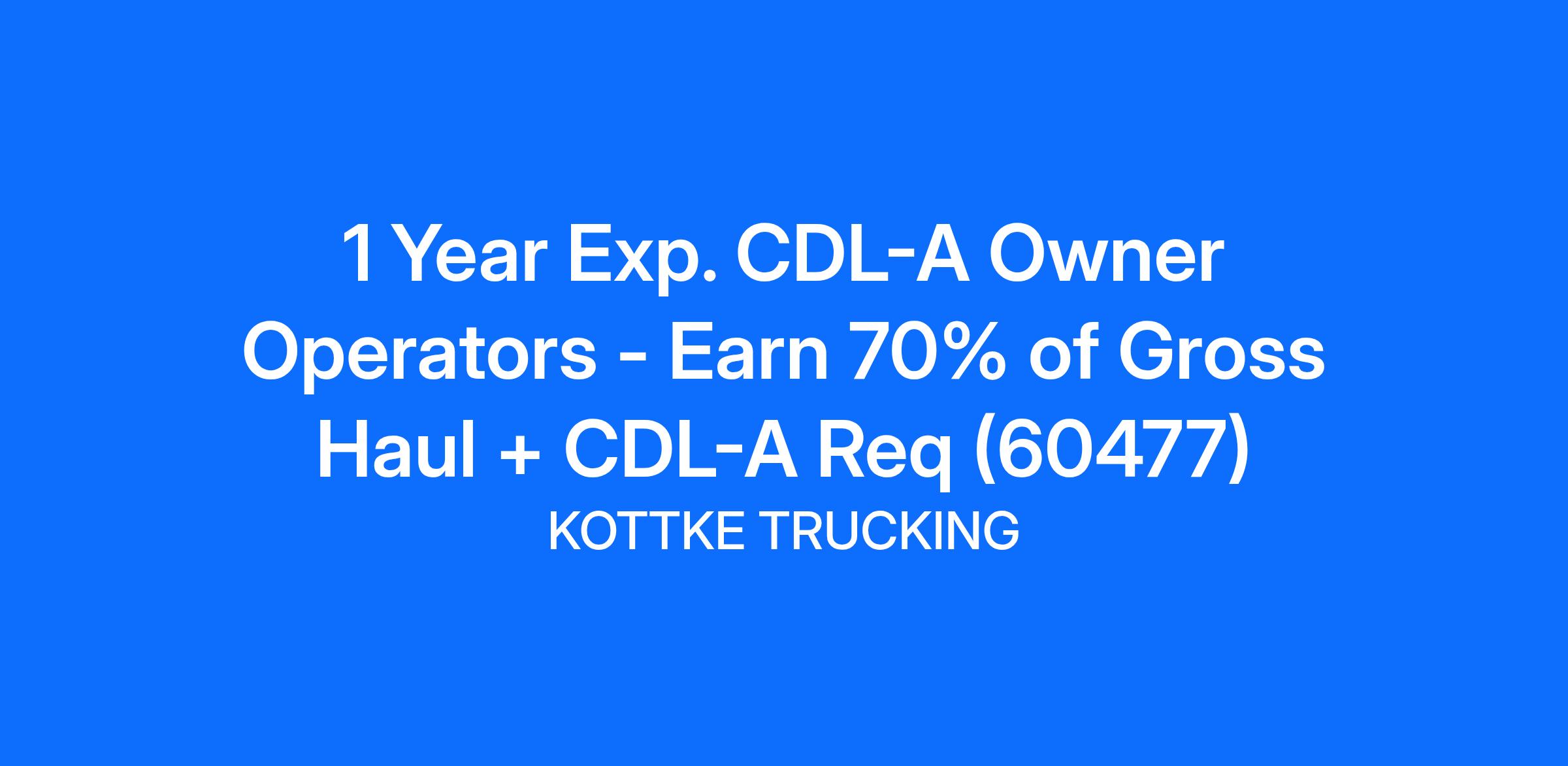 1 Year Exp. CDL-A Owner Operators - Earn 70% of Gross Haul + CDL-A Req (60477)
