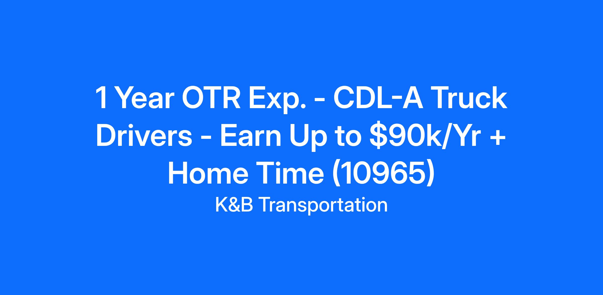 1 Year OTR Exp. - CDL-A Truck Drivers - Earn Up to $90k/Yr + Home Time (10965)