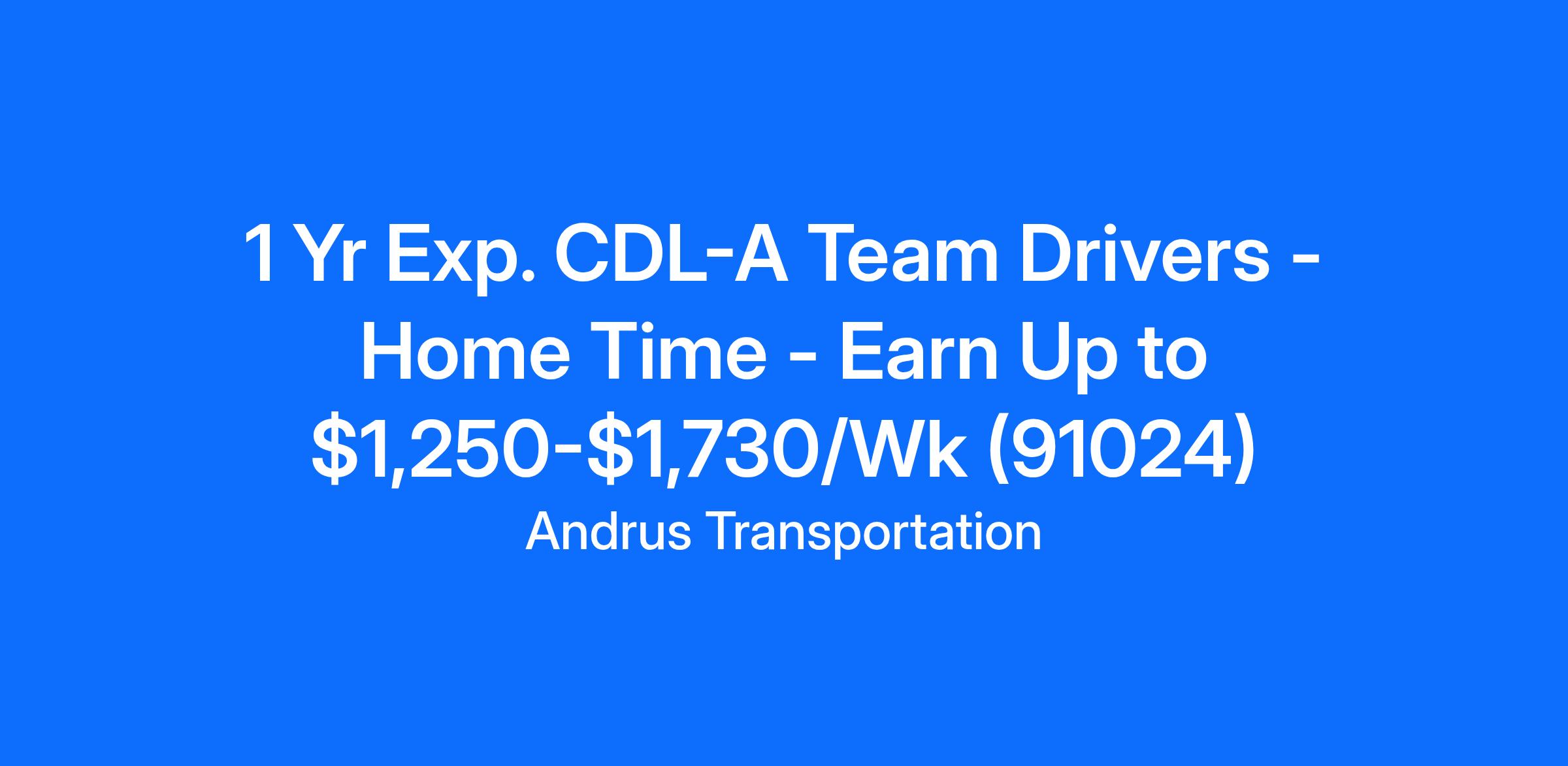 1 Yr Exp. CDL-A Team Drivers - Home Time - Earn Up to $1,250-$1,730/Wk (91024)