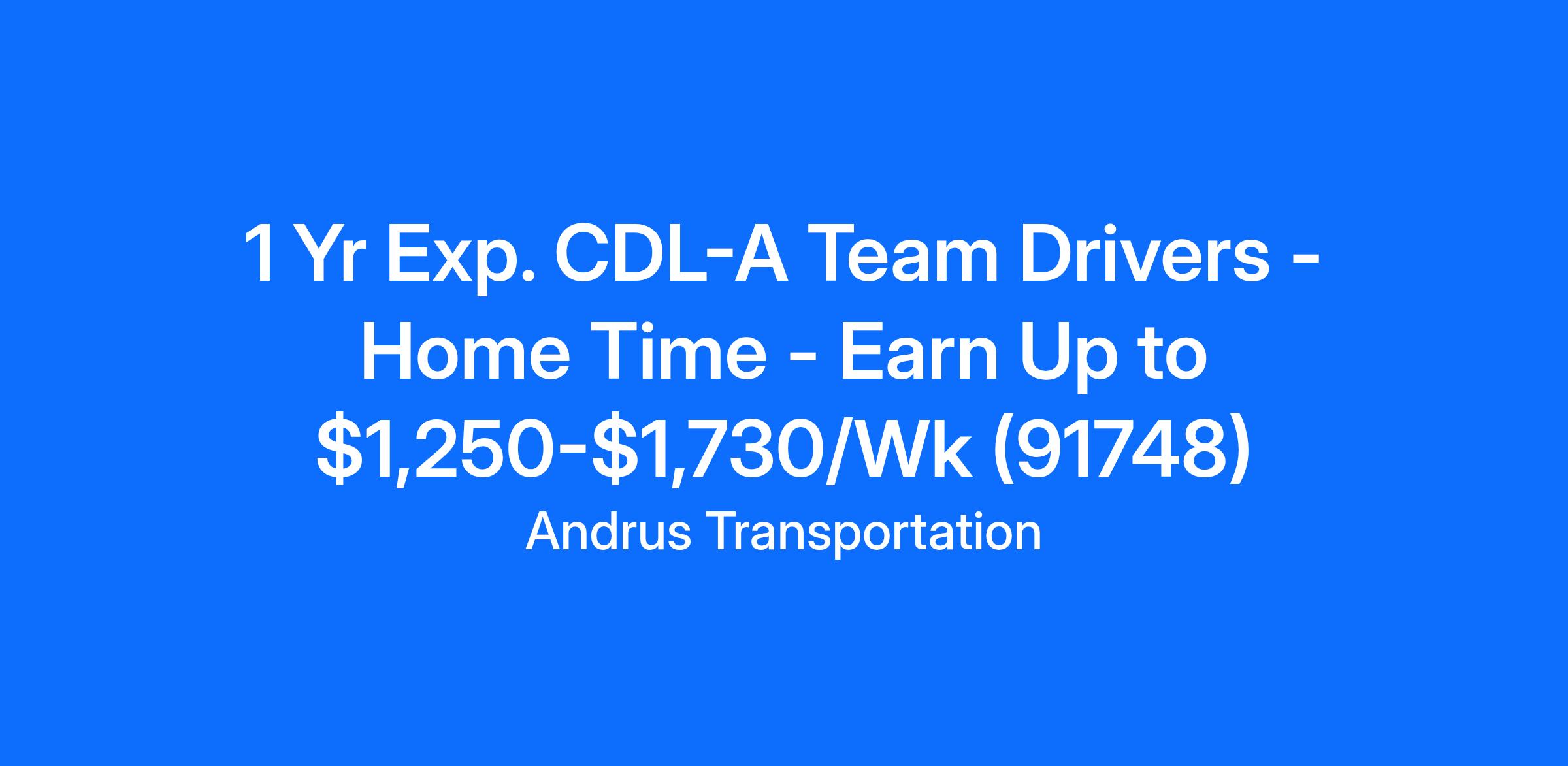 1 Yr Exp. CDL-A Team Drivers - Home Time - Earn Up to $1,250-$1,730/Wk (91748)