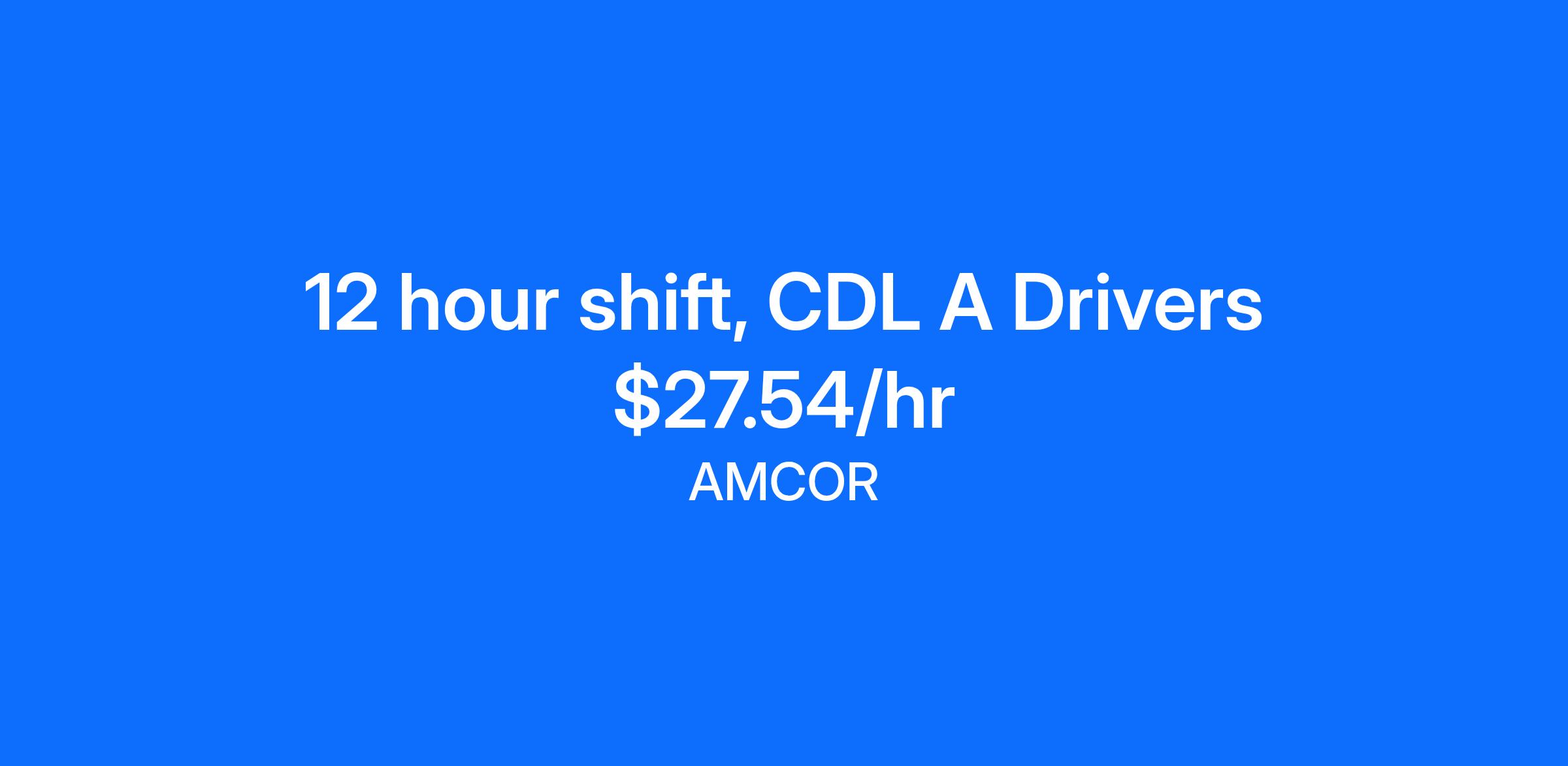 - Amcor values its drivers and their referrals $2500 referral for every driver brought onboard!!