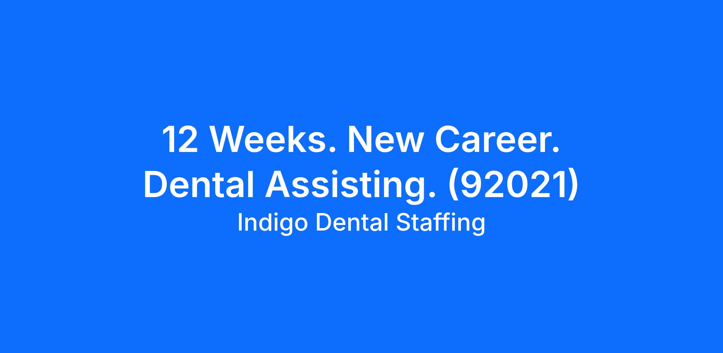 12 Weeks. New Career. Dental Assisting. (92021)