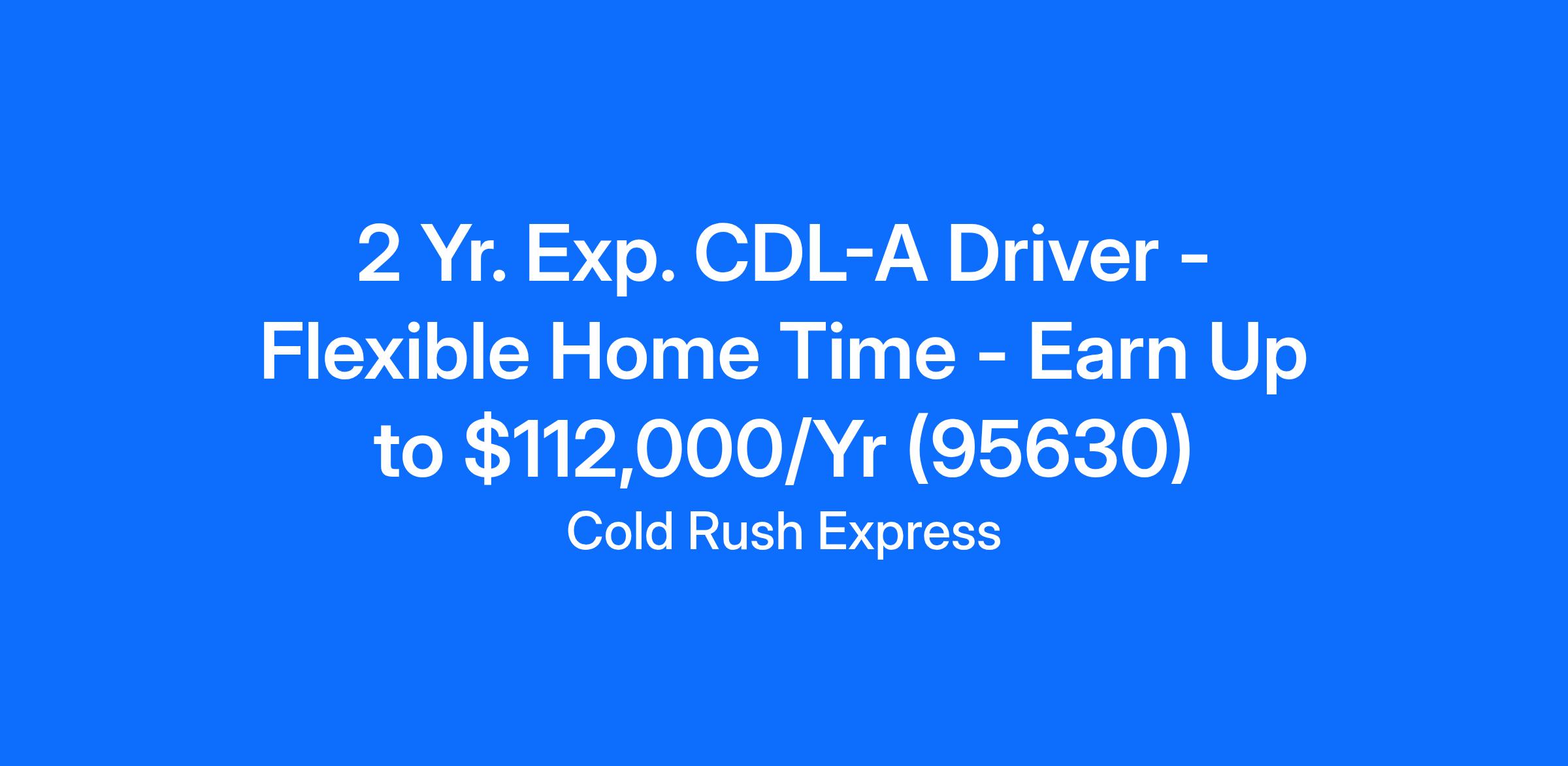 2 Yr. Exp. CDL-A Driver - Flexible Home Time - Earn Up to $112,000/Yr (95630)
