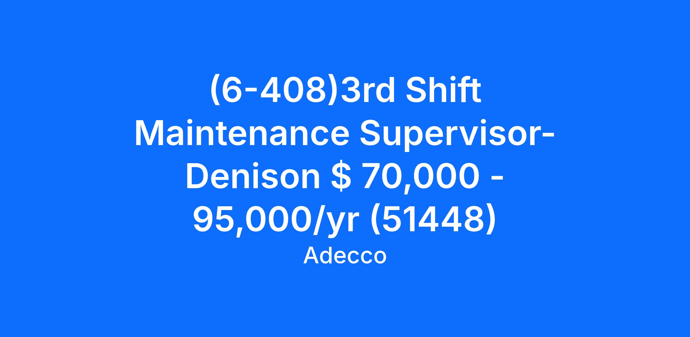 If you meet the above qualifications and would like to apply for this position, please click APPLY NOW and upload your most current resume or you may email your resume to our recruiter, Heather Murphy at ...@adeccona.com. Please include "Denison Super" on the subject line of any e-mail. Be sure to include your contact number.