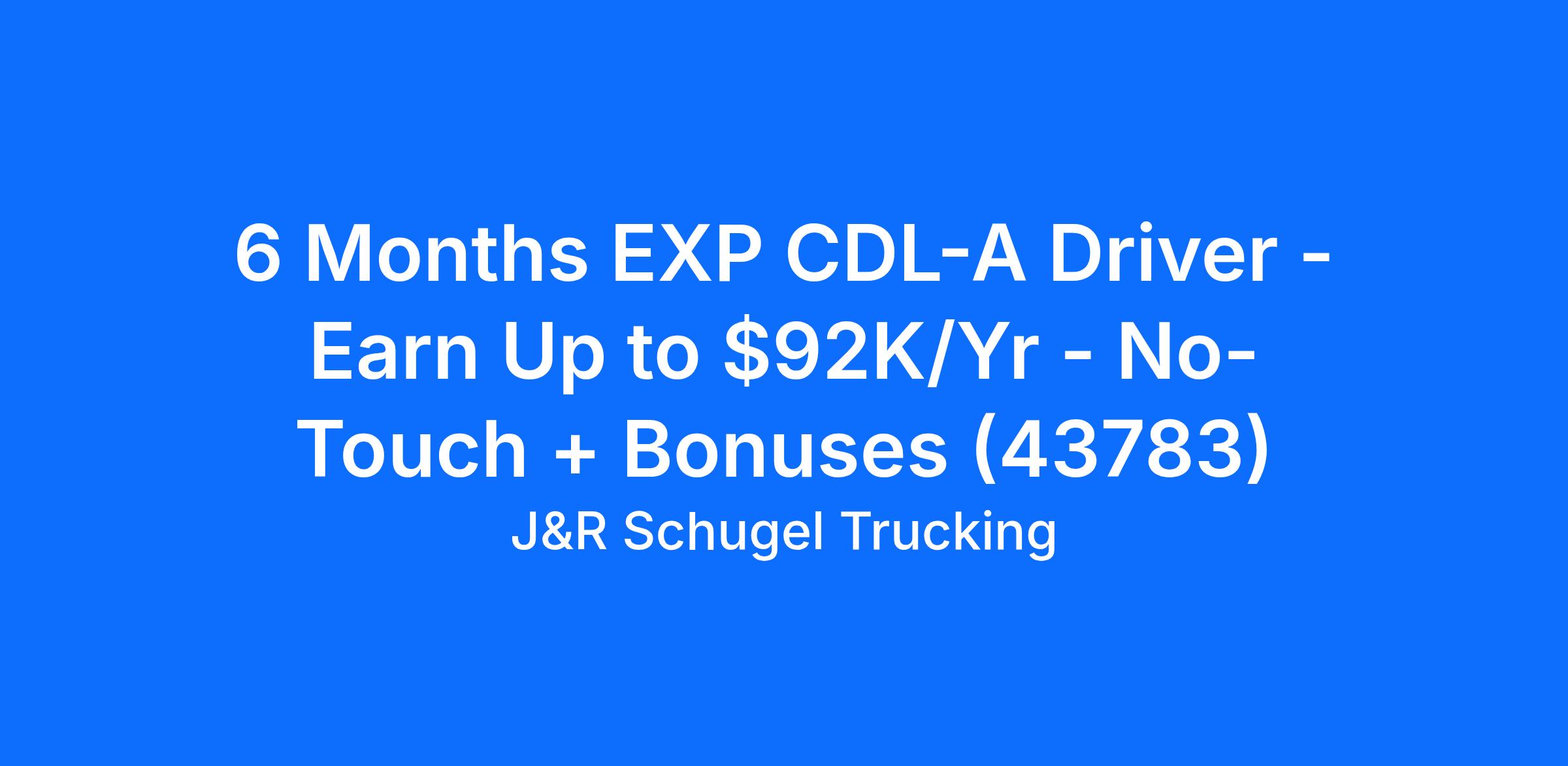 6 Months EXP CDL-A Driver - Earn Up to $92K/Yr - No-Touch + Bonuses (43783)