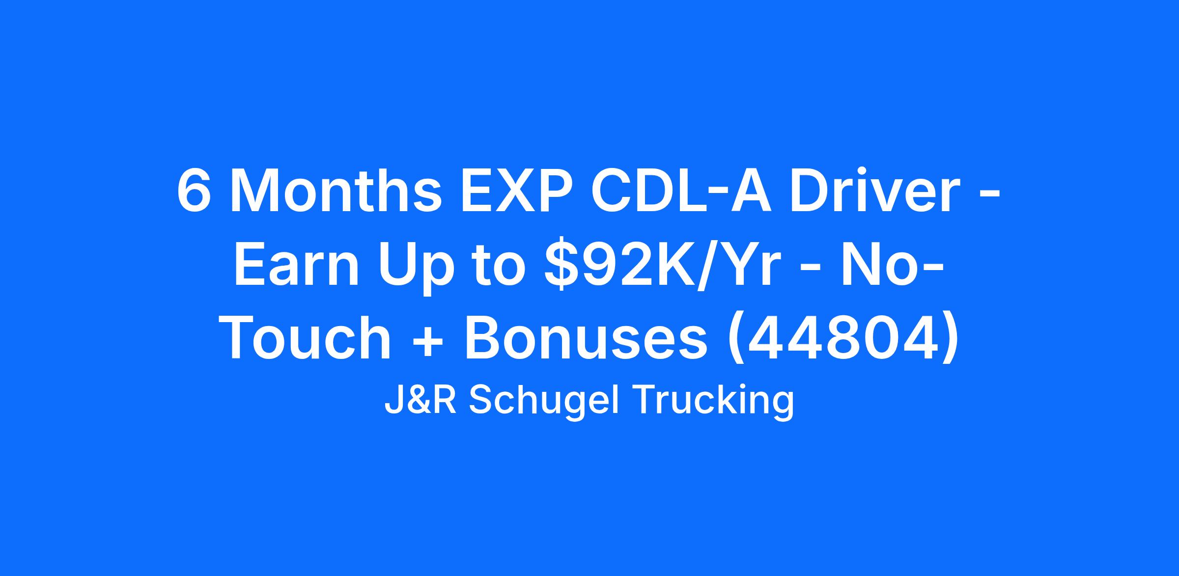6 Months EXP CDL-A Driver - Earn Up to $92K/Yr - No-Touch + Bonuses (44804)