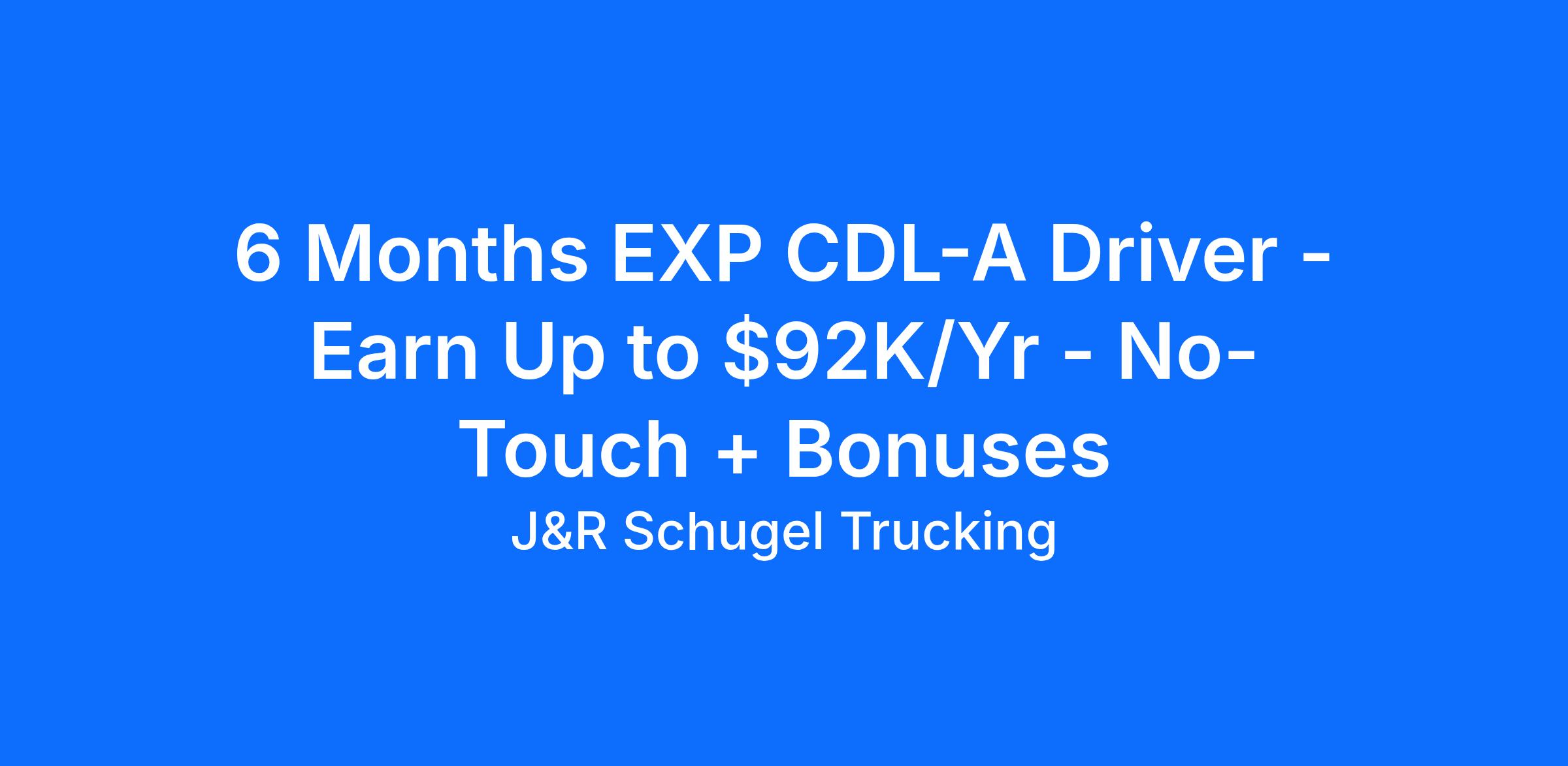 - Experience Needed: 6 months of recent OTR or regional CDL-A experience in last 3 years, safe driving record