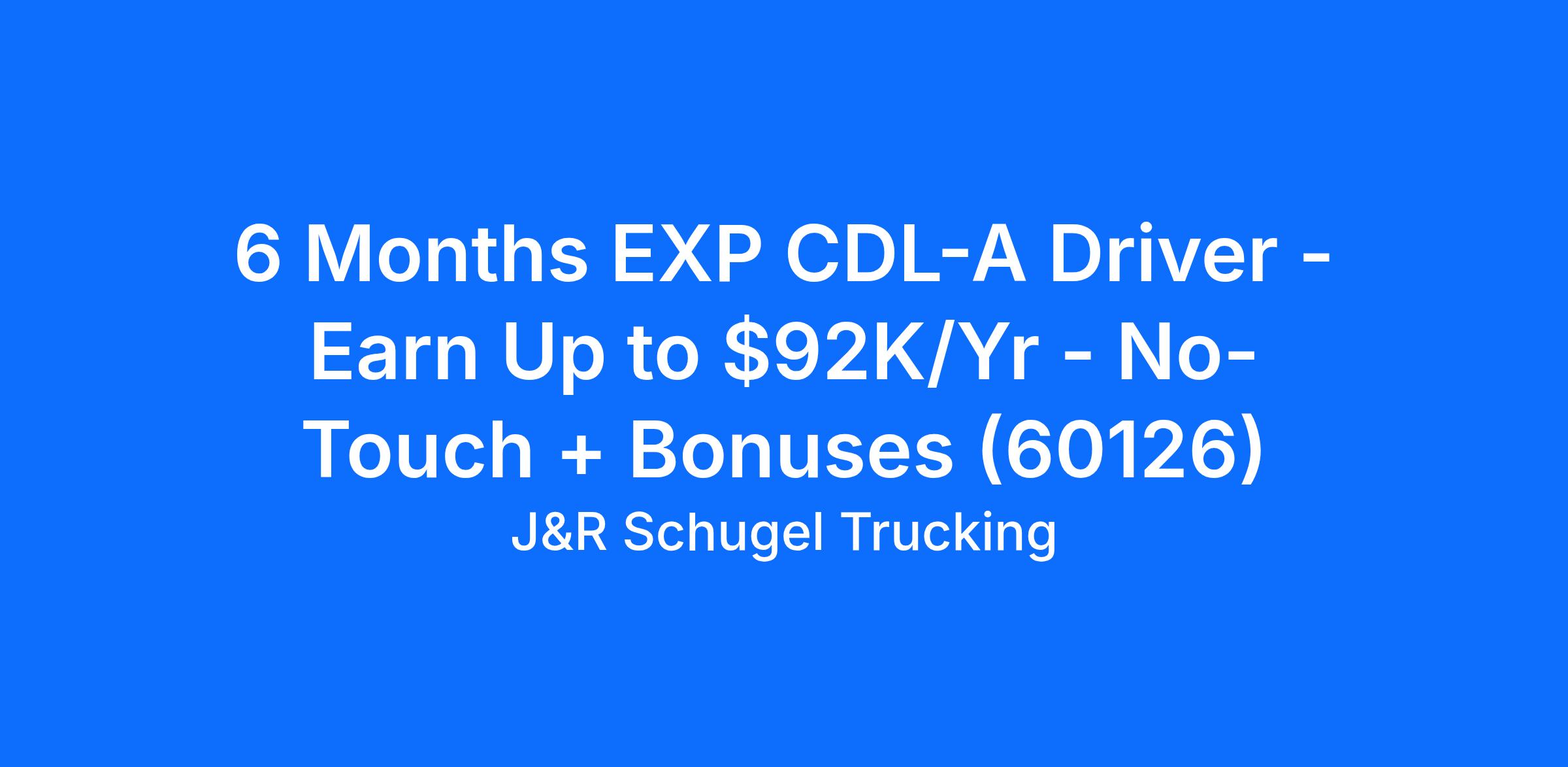 6 Months EXP CDL-A Driver - Earn Up to $92K/Yr - No-Touch + Bonuses (60126)