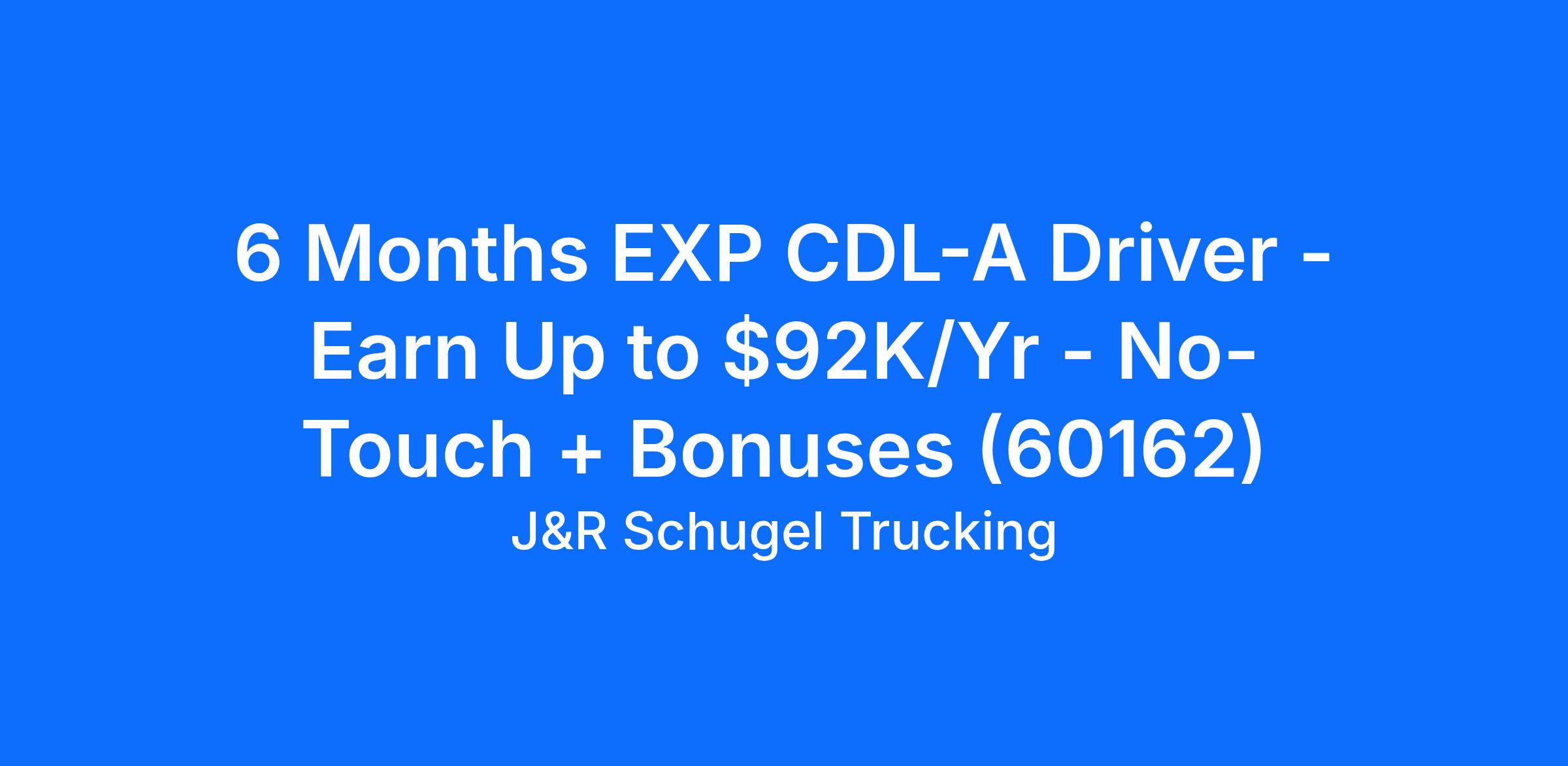 6 Months EXP CDL-A Driver - Earn Up to $92K/Yr - No-Touch + Bonuses (60162)