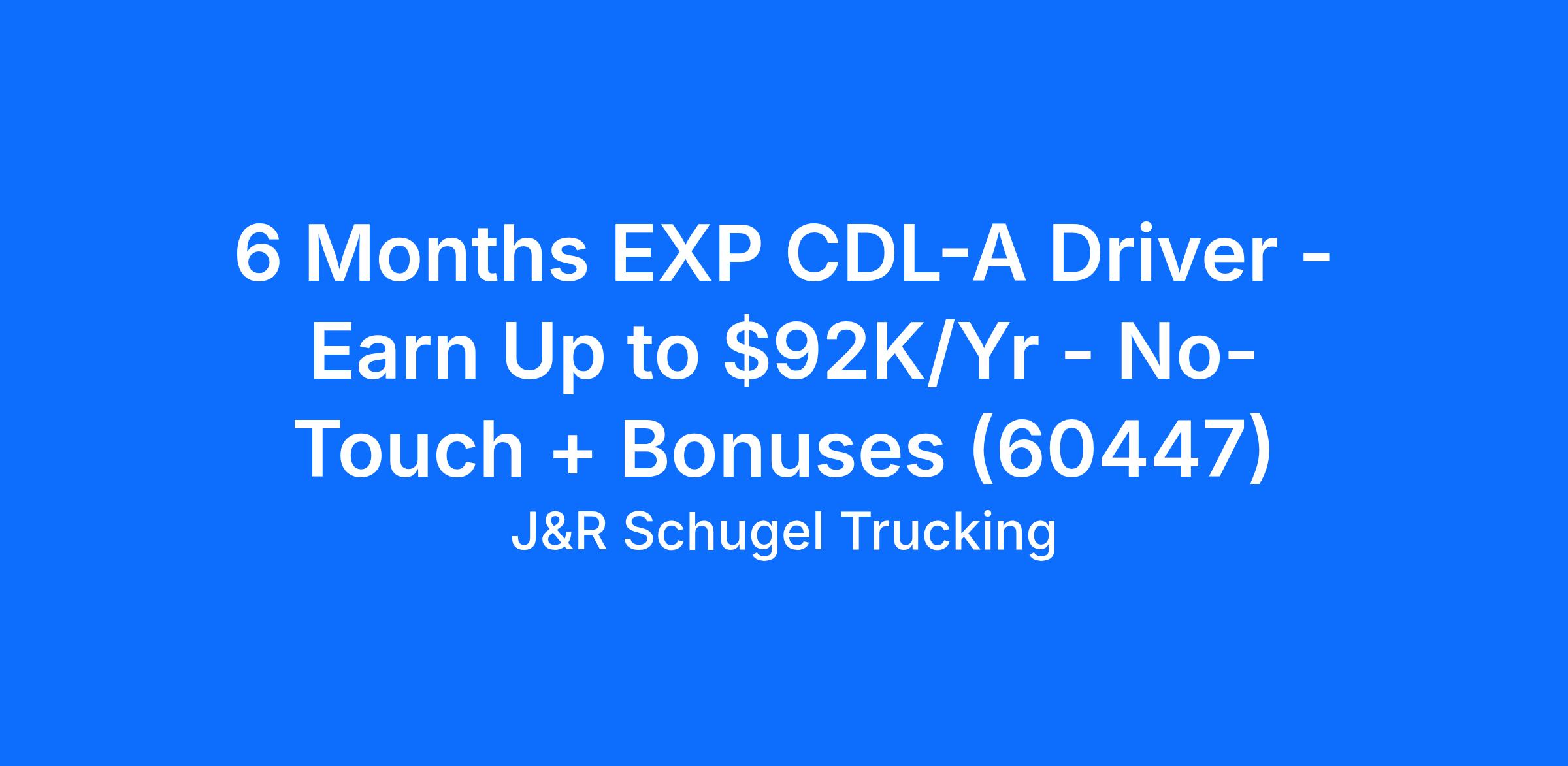 6 Months EXP CDL-A Driver - Earn Up to $92K/Yr - No-Touch + Bonuses (60447)