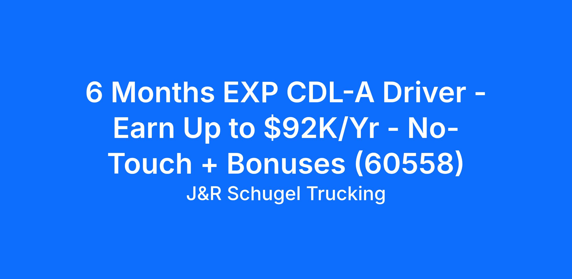 6 Months EXP CDL-A Driver - Earn Up to $92K/Yr - No-Touch + Bonuses (60558)
