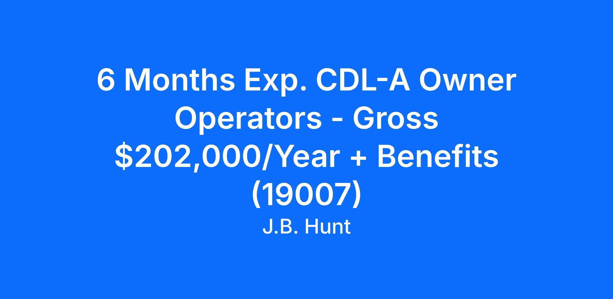 6 Months Exp. CDL-A Owner Operators - Gross $202,000/Year + Benefits (19007)