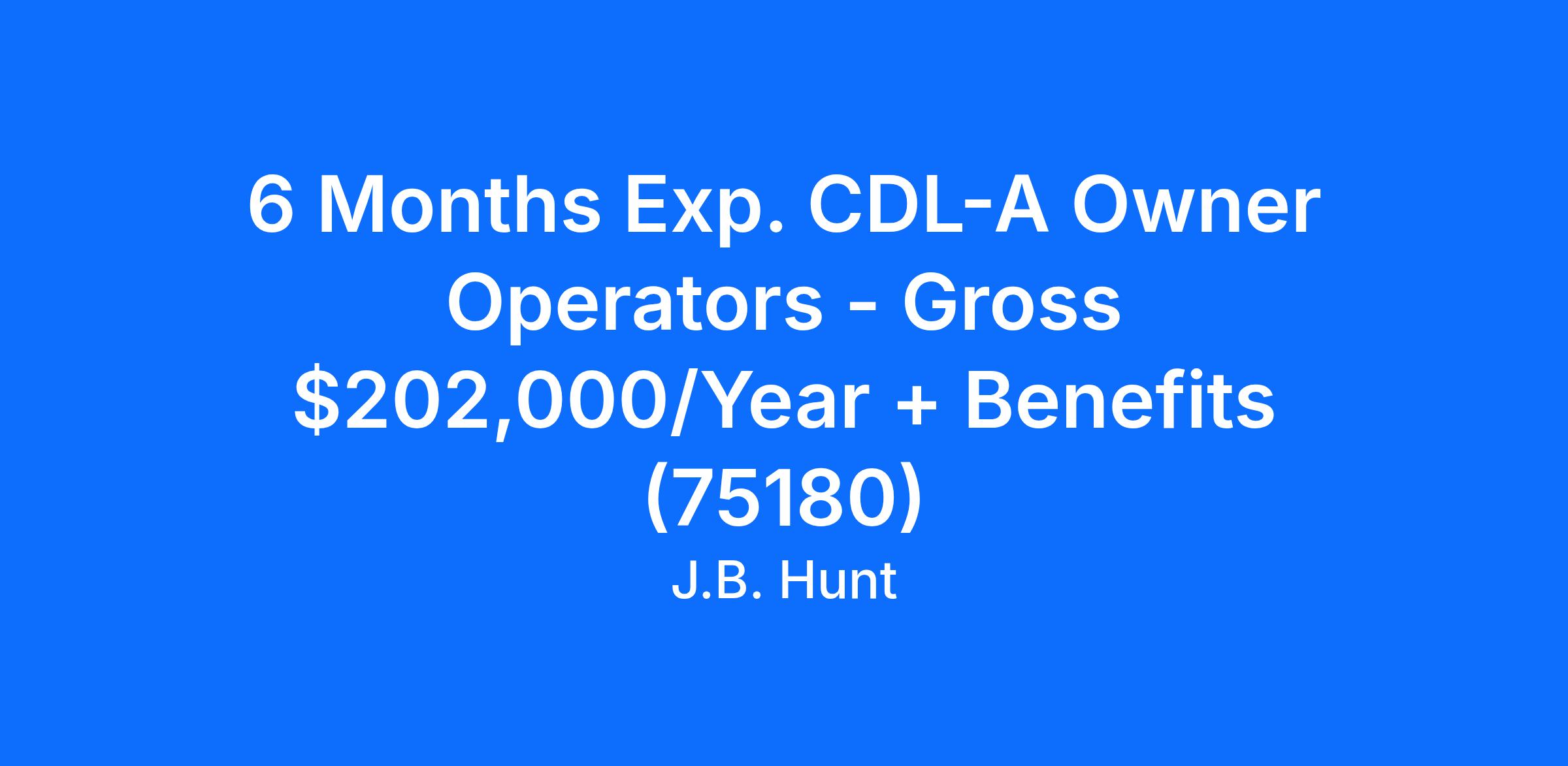 6 Months Exp. CDL-A Owner Operators - Gross $202,000/Year + Benefits (75180)
