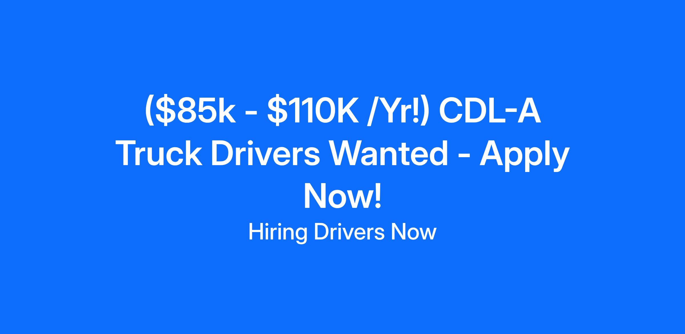 Hiring CDL-A Truck Driving Jobs w/consistent freight. ($85k - $110K a Year)