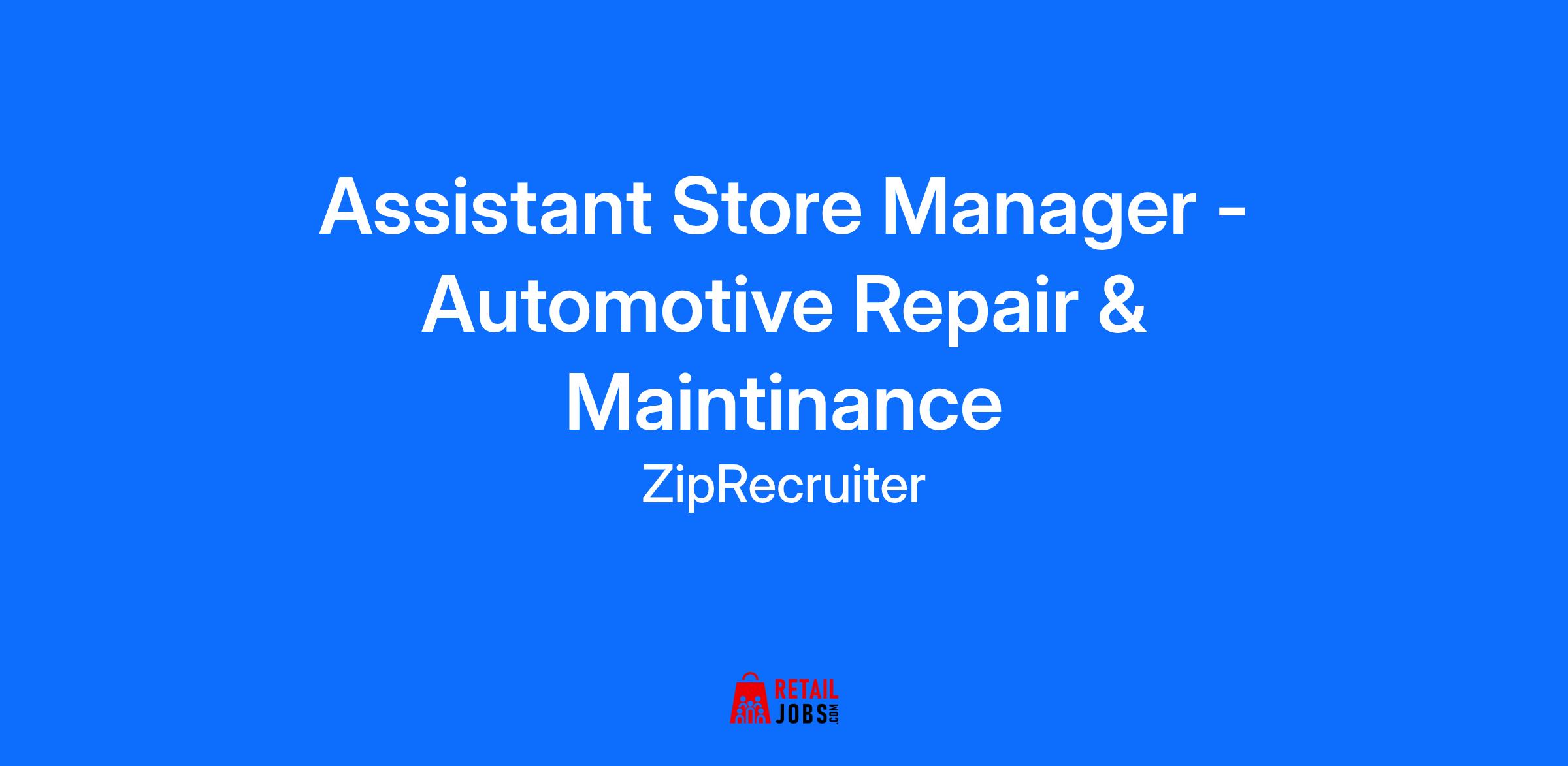 Assistant Store Manager - Automotive Repair & Maintinance