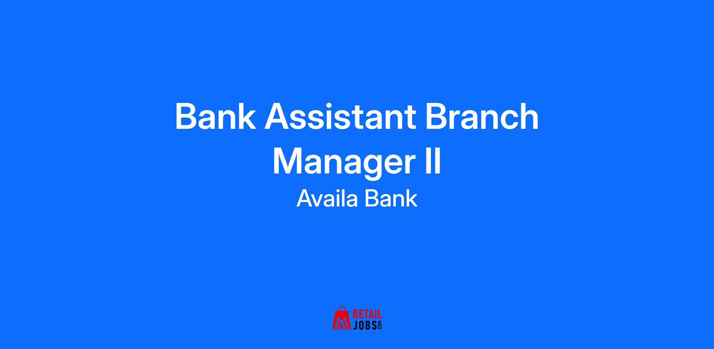 Availa Bank Description: EEO Employer Availa Bank believes our people make a difference, and we recognize that individual differences and experiences strengthen our teams. Each member of our team is empowered to inspire and enable our clients and the communities we serve to achieve financial success. This is not a remote position. BANK ASSISTANT BRANCH MANAGER II POSITION SUMMARY Areas of responsibility for this position are: Creating/mentoring an advisory-focused team to support customer growth. In conjunction with the Branch Manager (where applicable), maintains the operational soundness of the branch in accordance with policies and procedures, and federal/state regulations. The Assistant Branch Manager II is also responsible for overseeing and performing Universal Banker I, Universal Banker II, and Universal Banker III duties. The Assistant Branch Manager II may also act as Branch Manager in the Branch Manager's absence. BENEFITS Availa Bank offers a rich selection of benefits you can personalize to support you and your family's needs. Benefits may include: Medical, Dental & Vision Plans Option for Health Savings Account (HSA) Life Insurance (Company paid for employee) 401K and Employee Stock Ownership Plan (ESOP) Company Paid Short & Long Term Disability Insurance Flexible Spending Account (FSA) & Dependent Care Eligibility for Tuition Assistance and Discounts Employee Assistance Program (EAP) BANK ASSISTANT BRANCH MANAGER II ESSENTIAL DUTIES AND ACCOUNTABILITIES Complete scheduling for all Universal Bankers Supervise and provide work direction to all Universal Bankers Perform cash drawer audits, conduct performance appraisals, and facilitate new employee training and/or mentoring Coach and mentor Universal Bankers in production and growth-related activities Attract business and consumer relationships through internal and external sales and customer service strategies Expand existing business and consumer relationships through sales and customer service strategies. Oversee and perform Universal Banker I, II, and III duties, including consumer lending Serve as a point of contact/have working knowledge of troubleshooting and servicing coin machines, money handling machines, ATMs/ITMs, and mechanics of the drive-up equipment (as applicable in each location) Maintain an open level of communication with the Branch Manager, Regional Retail Leader, and/or Market President Assist with more complex customer issues Assist Retail leaders with other duties as needed Requirements: BANK ASSISTANT BRANCH MANAGER QUALIFICATIONS: Education High school diploma or equivalent required Experience One to three years of banking or cash handling experience preferred Leadership/people management experience preferred Other Skills and Abilities Demonstrated proficiency in typing with speed and accuracy; basic keyboarding skills are required Strong math skills; add, subtract, multiply, and divide in all units of measure Exceptional oral, written, and interpersonal communication skills with the ability to apply common sense to carry out instructions and instruct others, interpret documents, understand procedures, write reports and correspondence, and speak clearly to customers and employees Ability to deal with complex problems involving multiple facets and variables in non-standardized situations Exceptional organizational and time management skills; ability to function well in a fast-paced environment Maintain a complete understanding of regulatory and compliance policies and procedures Demonstrate a "lead by example" mentality Be able to work flexible hours and shifts Travel to/from and work in multiple locations SUPERVISORY RESPONSIBILITIES This position is responsible for supervising staff in accordance with the bank's policies and applicable laws. Responsibilities include training employees; planning, assigning, and directing work; appraising performance; rewarding and taking corrective action with employees; addressing complaints and resolving problems. PM21 PI7e79f09266fc-6788