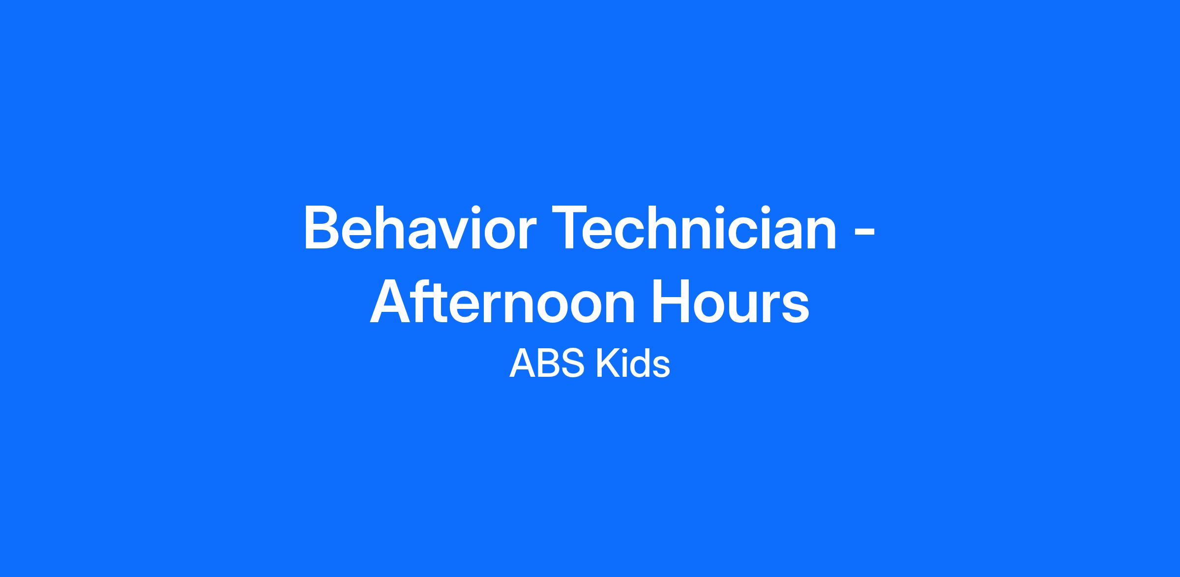 Behavior Technician - Afternoon Hours