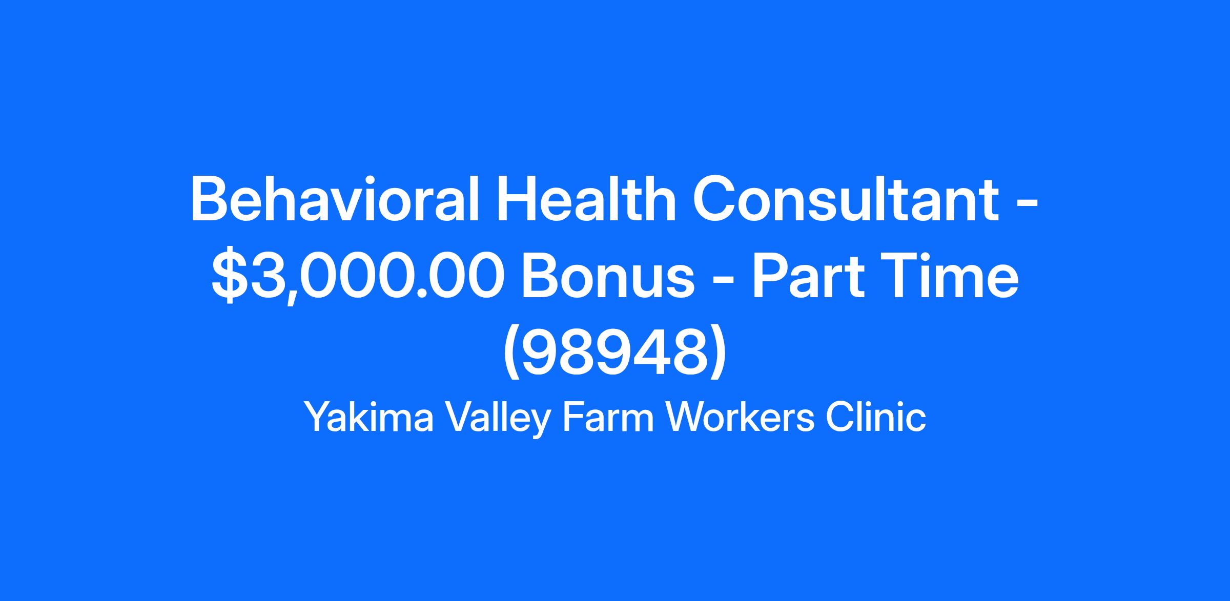 Behavioral Health Consultant - $3,000.00 Bonus - Part Time (98948)