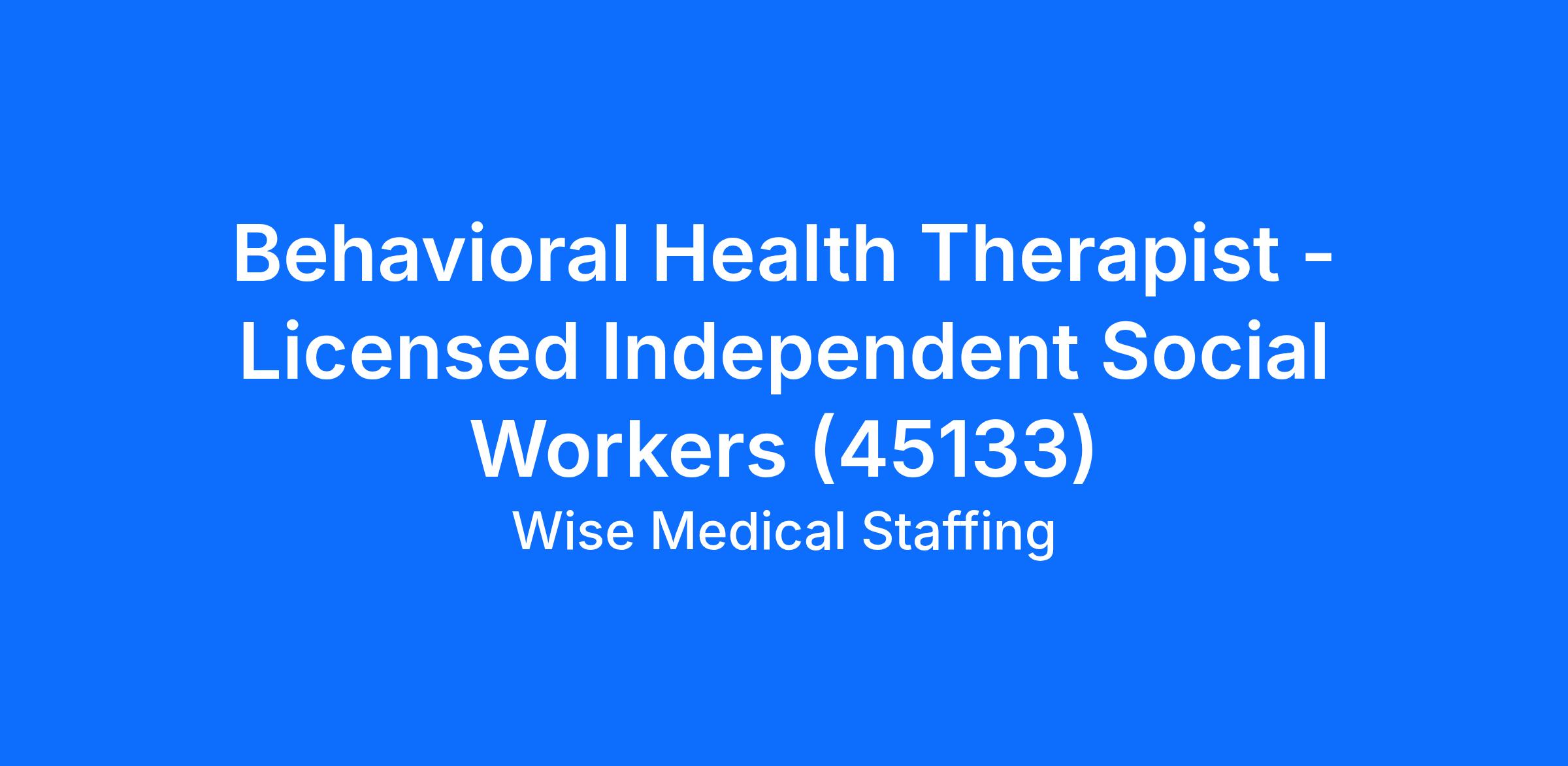 Behavioral Health Therapist (LISW / LPCC)