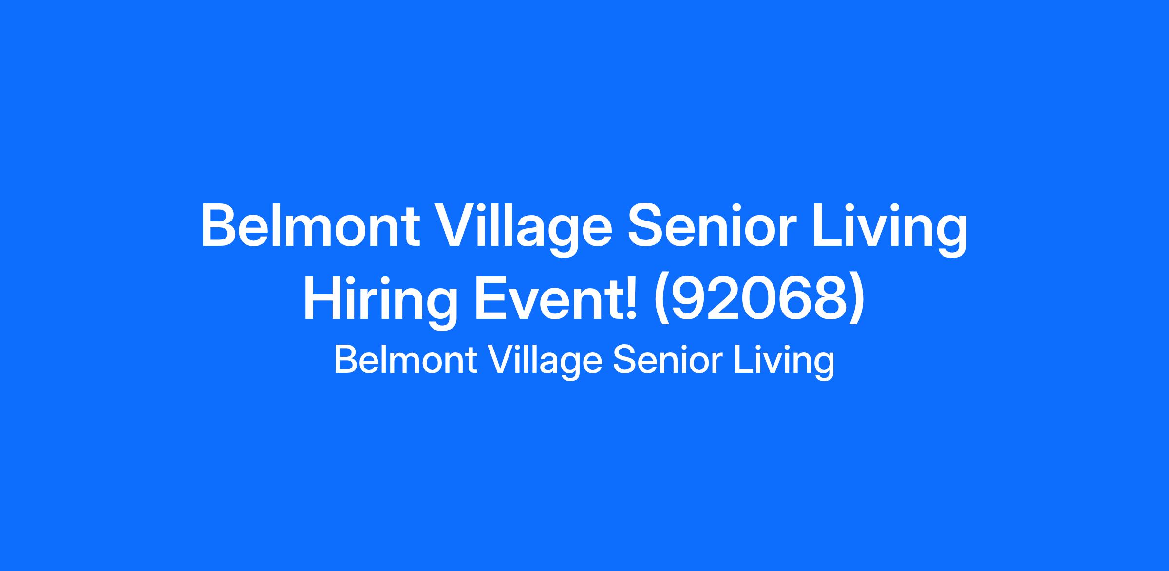 Belmont Village Senior Living Sabre Springs Hiring Event! Interviews will be conducted and offers made to highly qualified candidates on a first come, first serve basis.