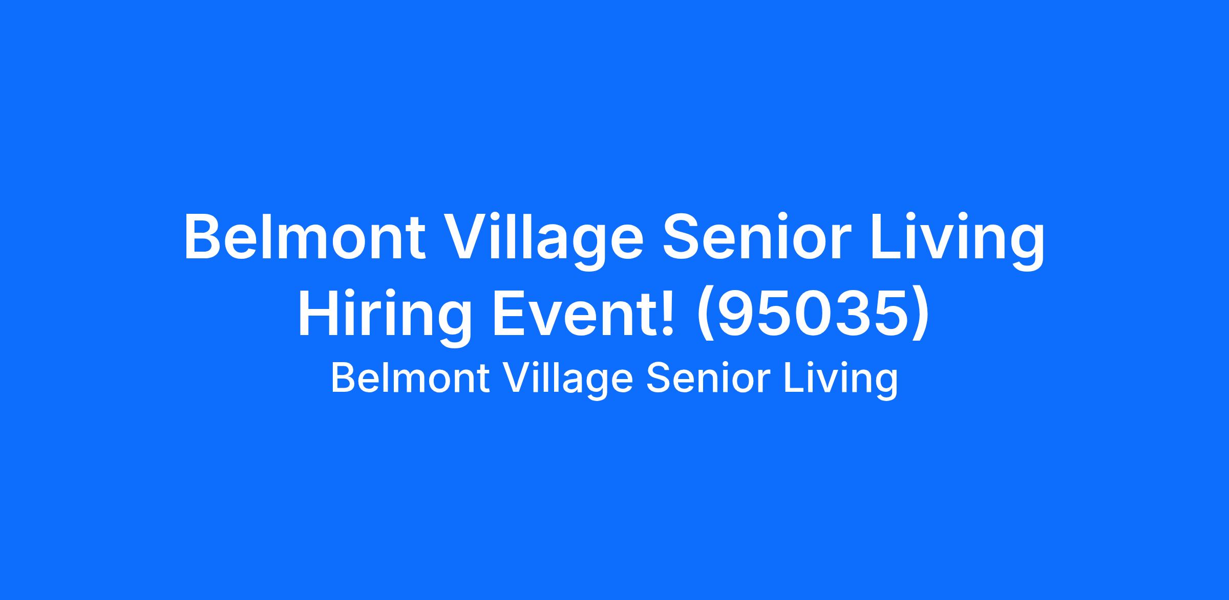 Belmont Village Senior Living Los Gatos Hiring Event! Interviews will be conducted and offers made to highly qualified candidates on a first come, first serve basis.