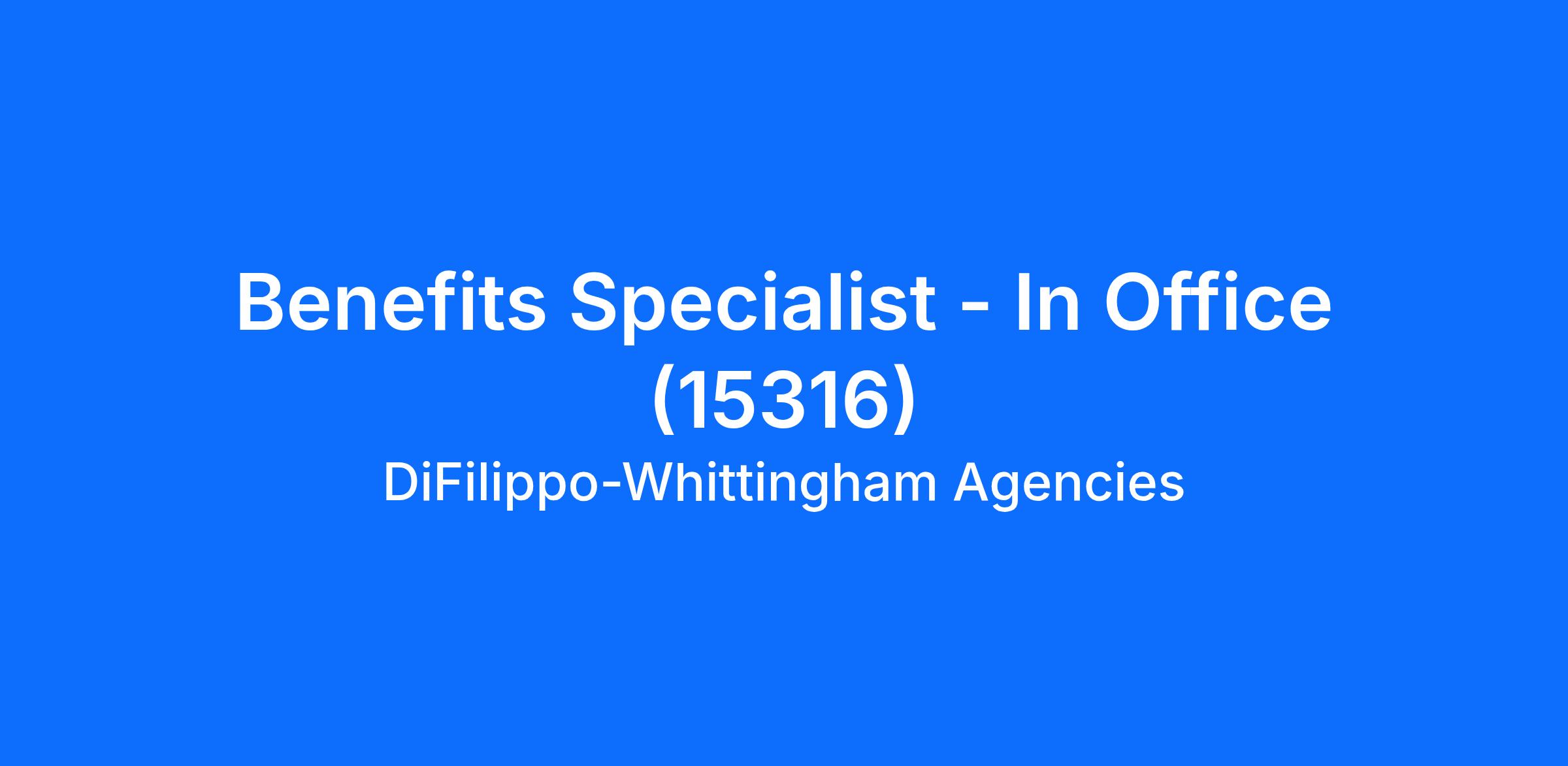 Benefits Specialist - In Office (15316)