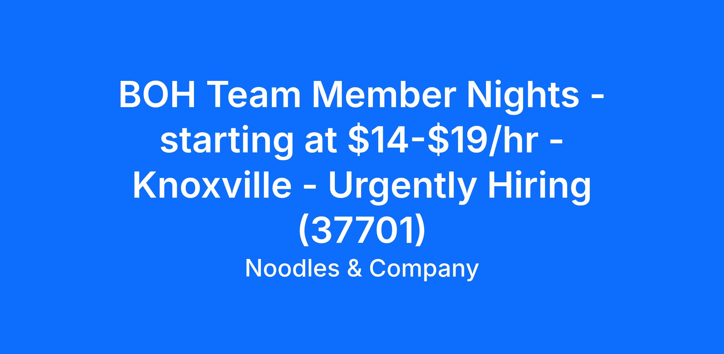 BOH Team Member Nights - starting at $14-$19/hr - Knoxville - Urgently Hiring (37701)