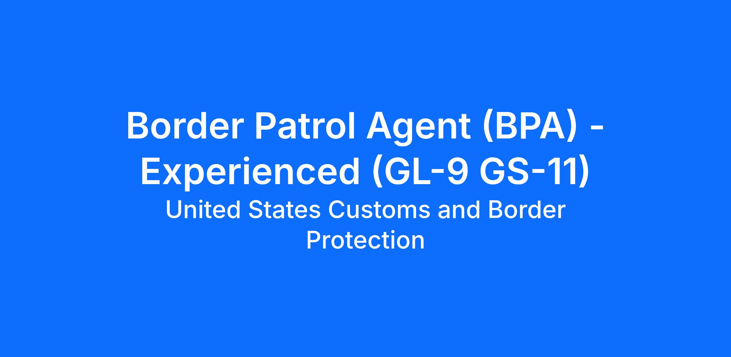 Border Patrol Agent (BPA) - Experienced (GL-9 GS-11)