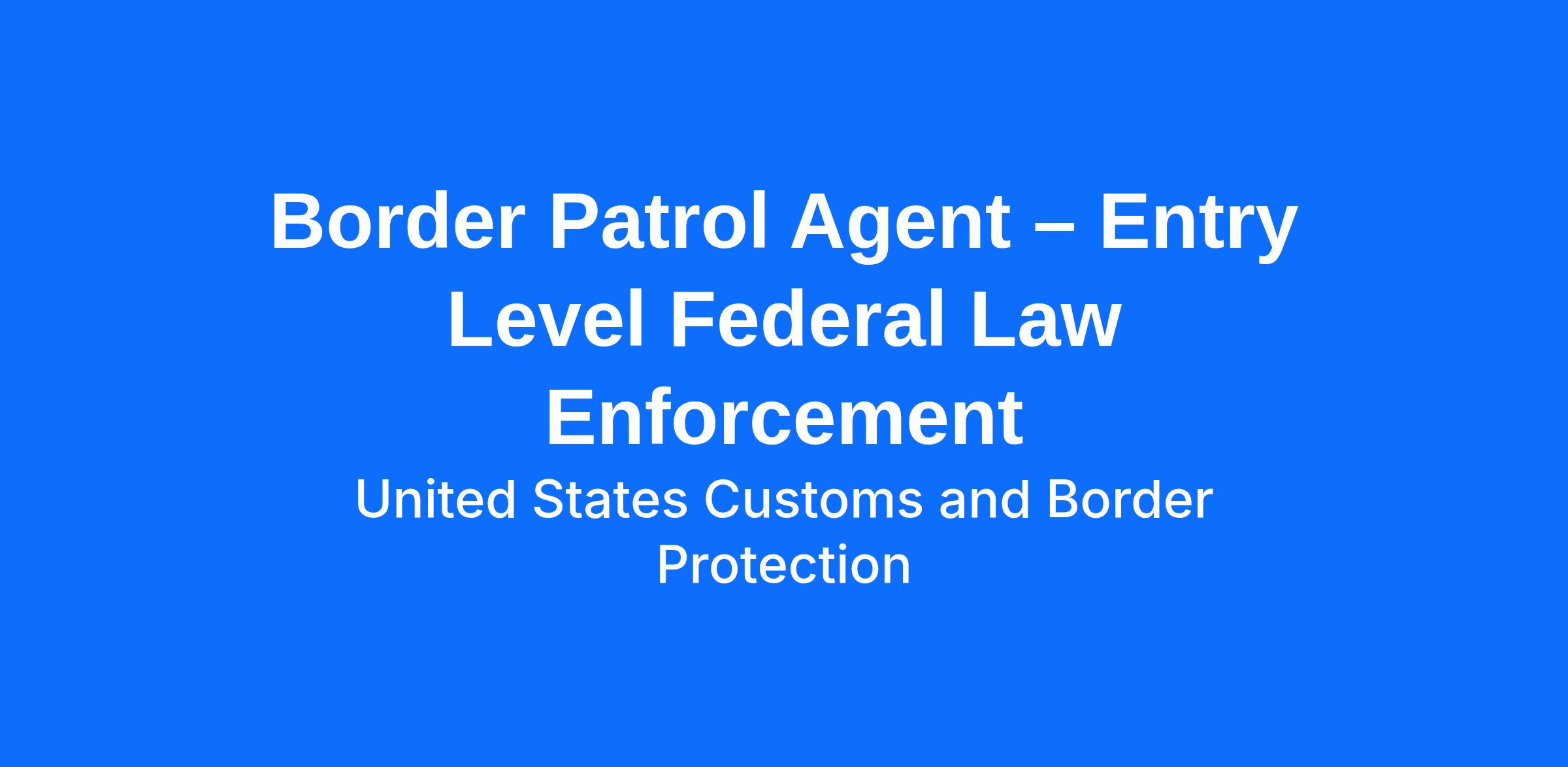 Border Patrol Agent – Entry Level Federal Law Enforcement