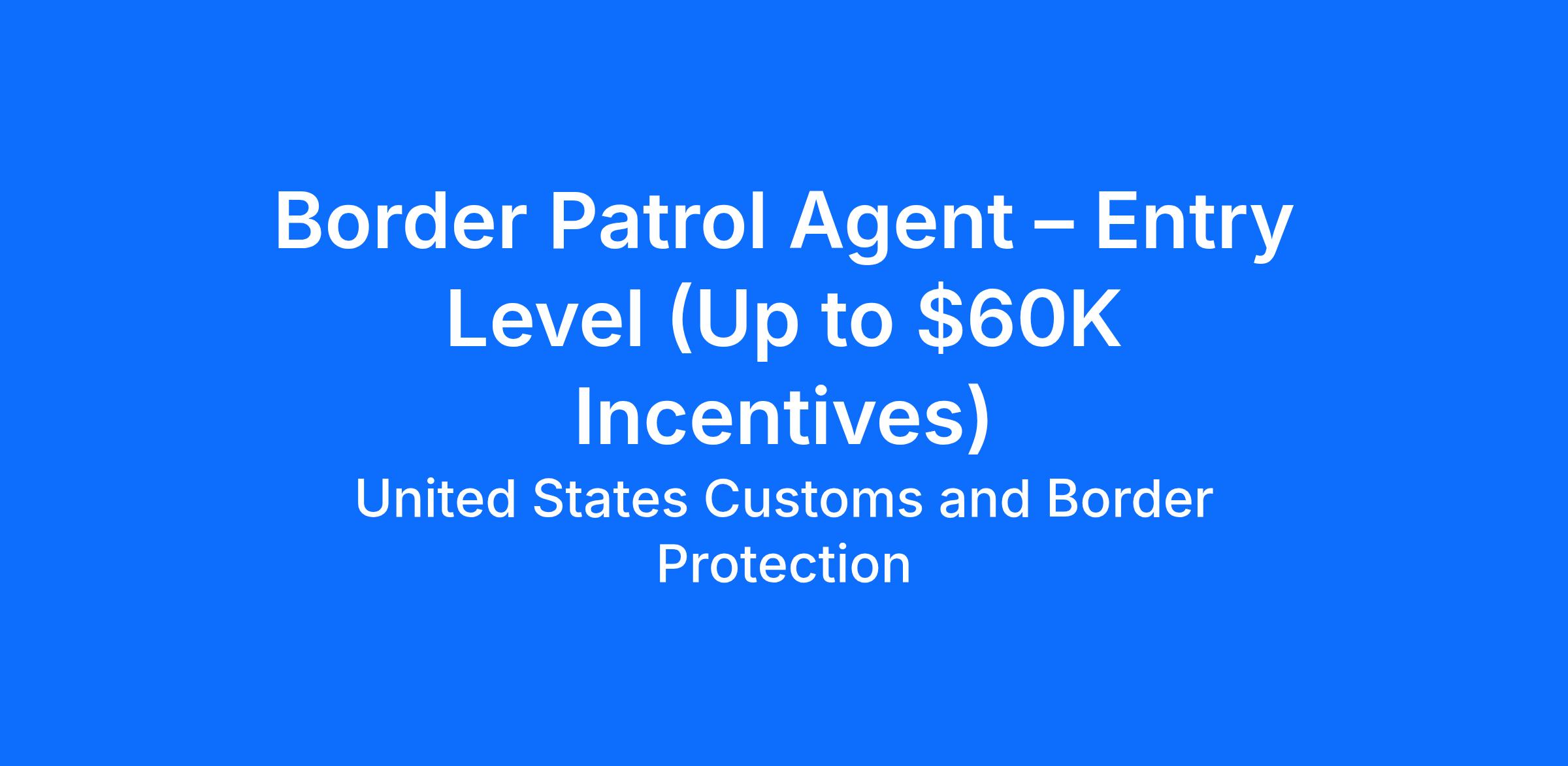 Border Patrol Agent – Entry Level (Up to $60K Incentives)