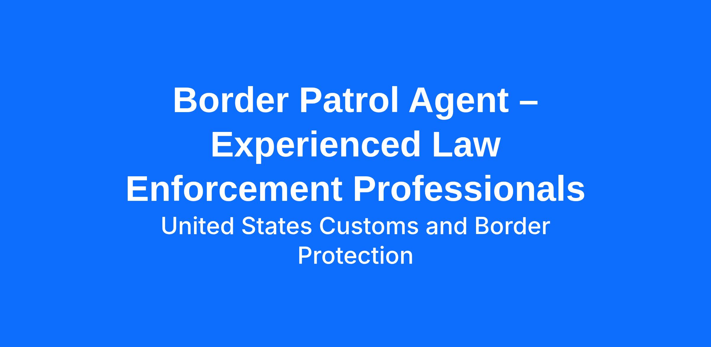 Border Patrol Agent – Experienced Law Enforcement Professionals