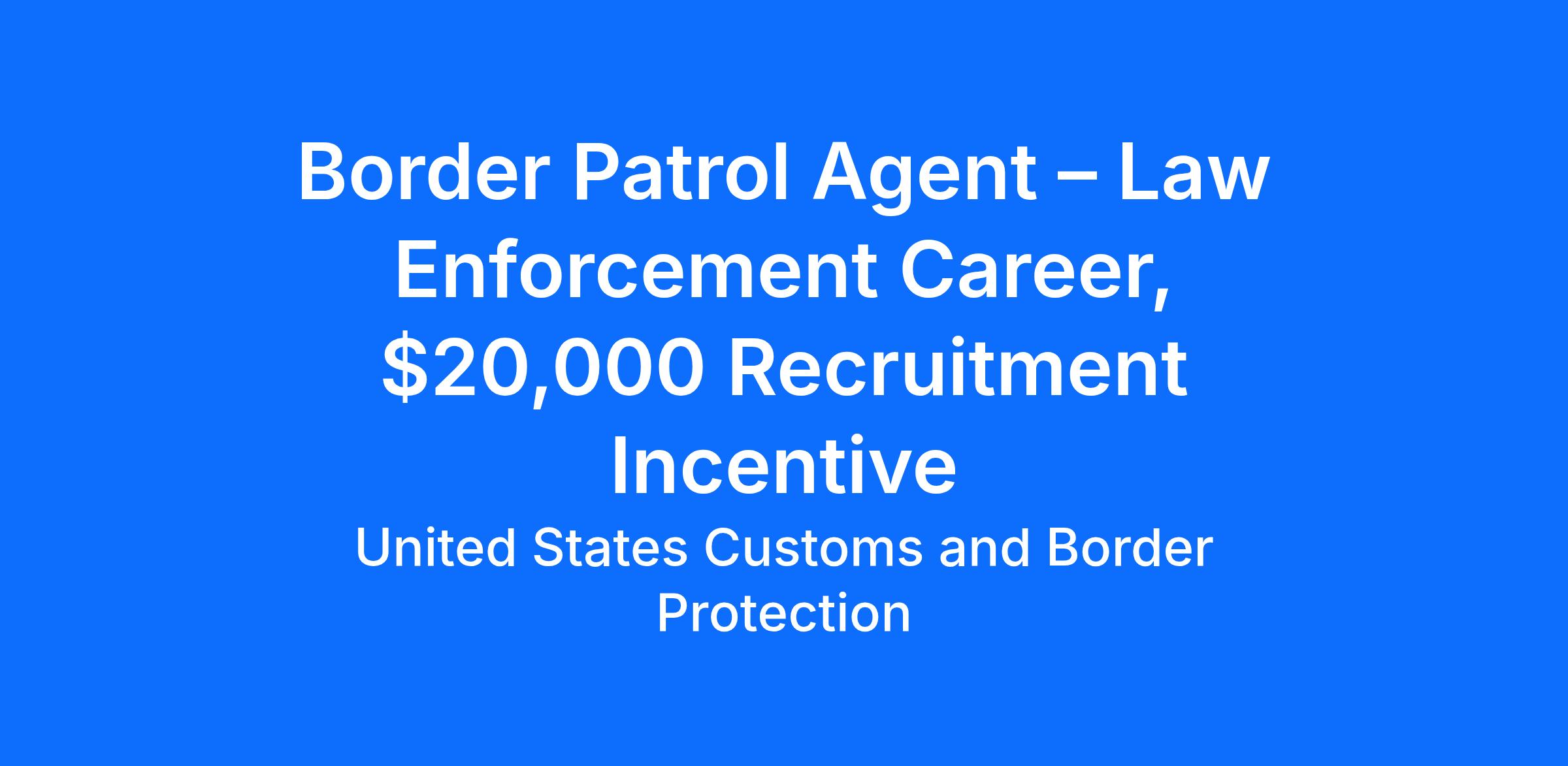 Border Patrol Agent – Law Enforcement Career, $20,000 Recruitment Incentive