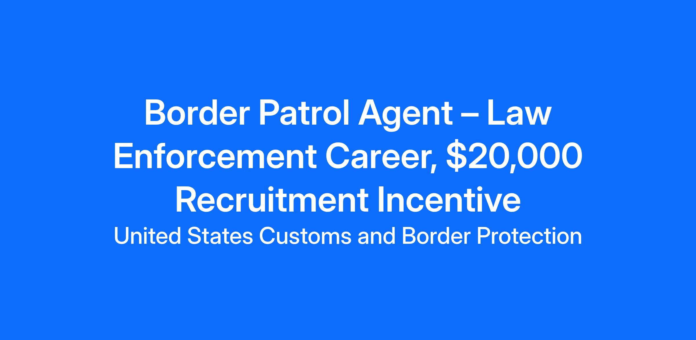Border Patrol Agent – Law Enforcement Career, $20,000 Recruitment Incentive