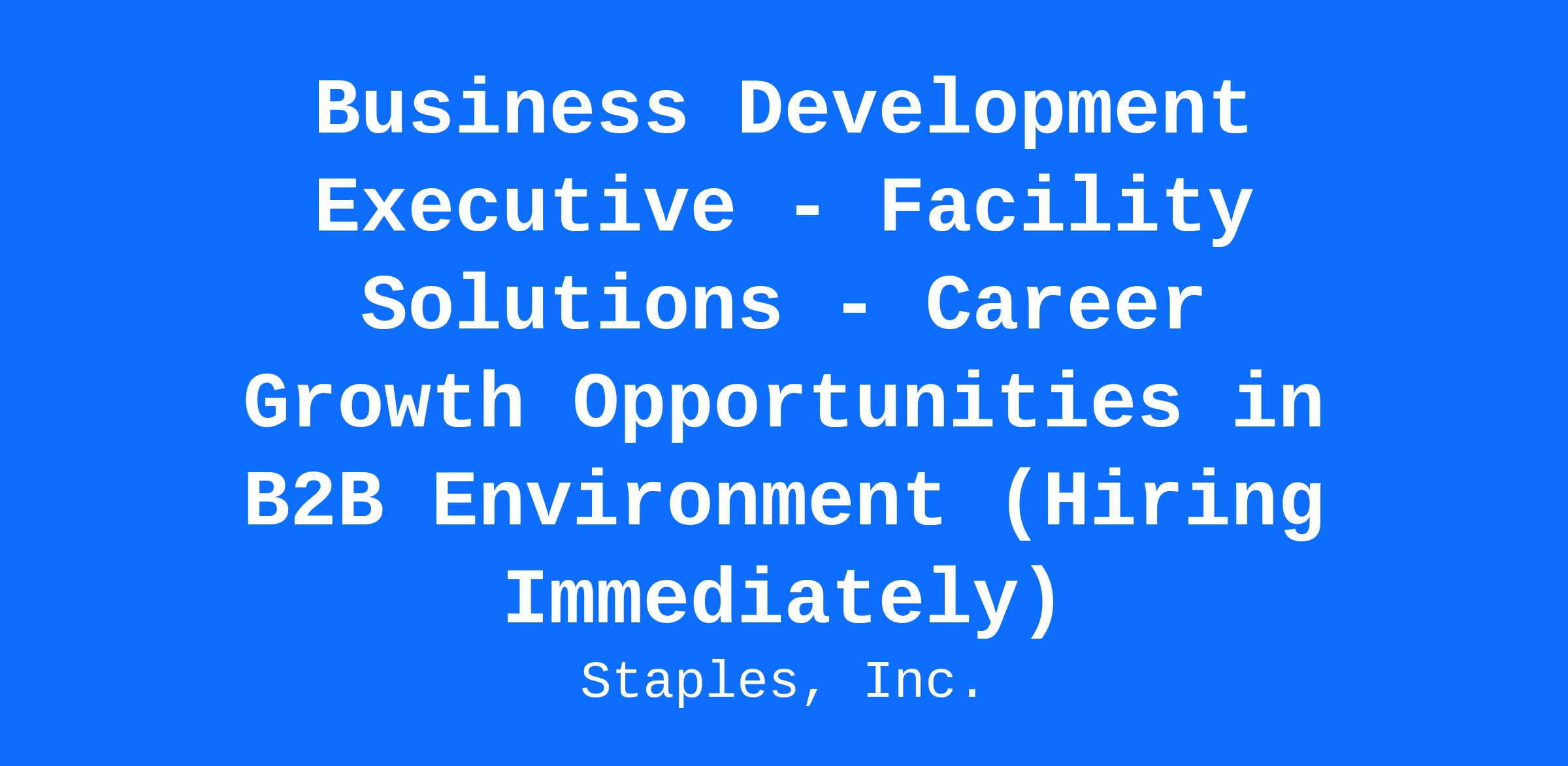 Business Development Executive - Facility Solutions - Career Growth Opportunities in B2B Environment (Hiring Immediately)