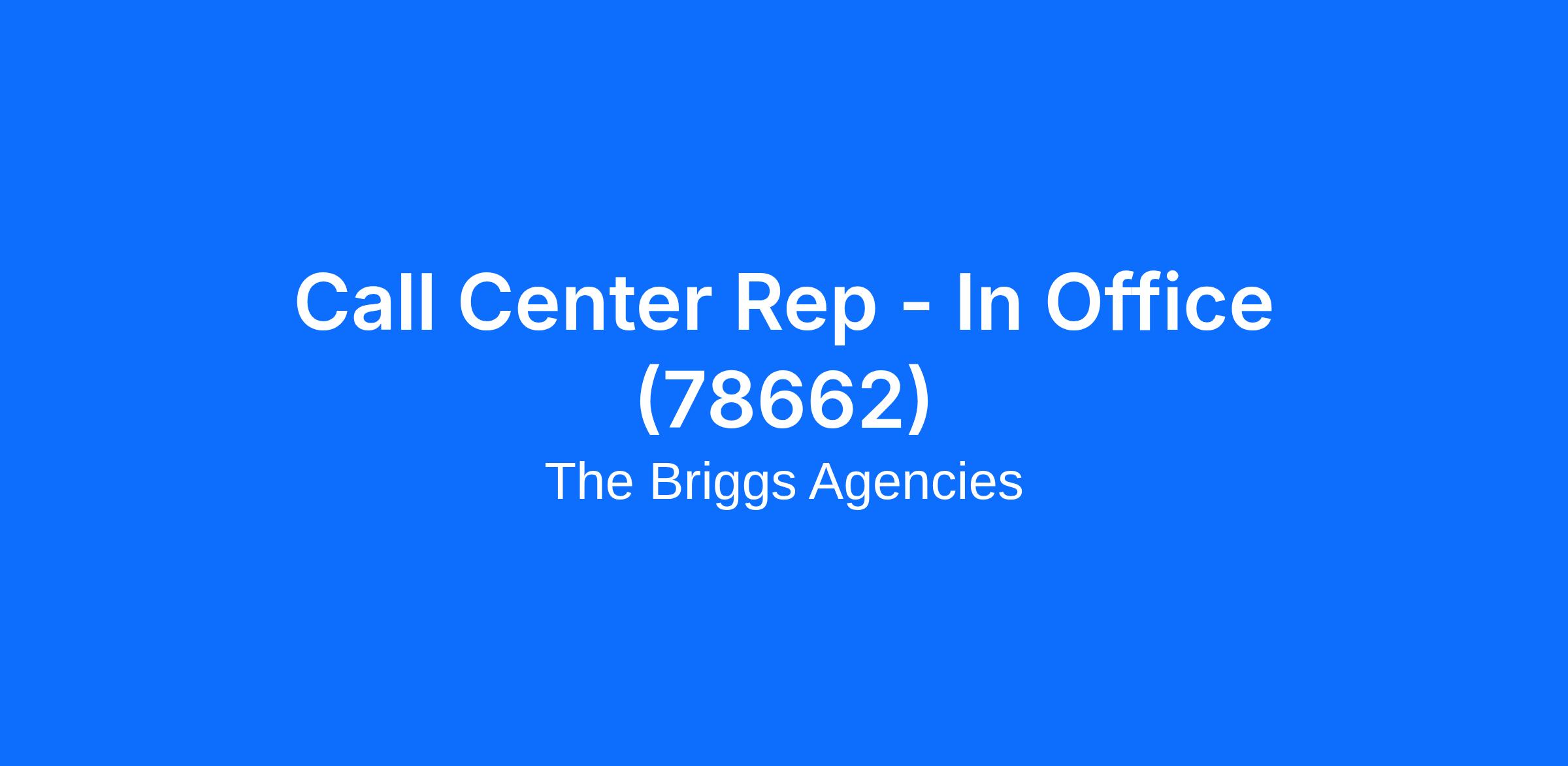 Call Center Rep - In Office (78662)