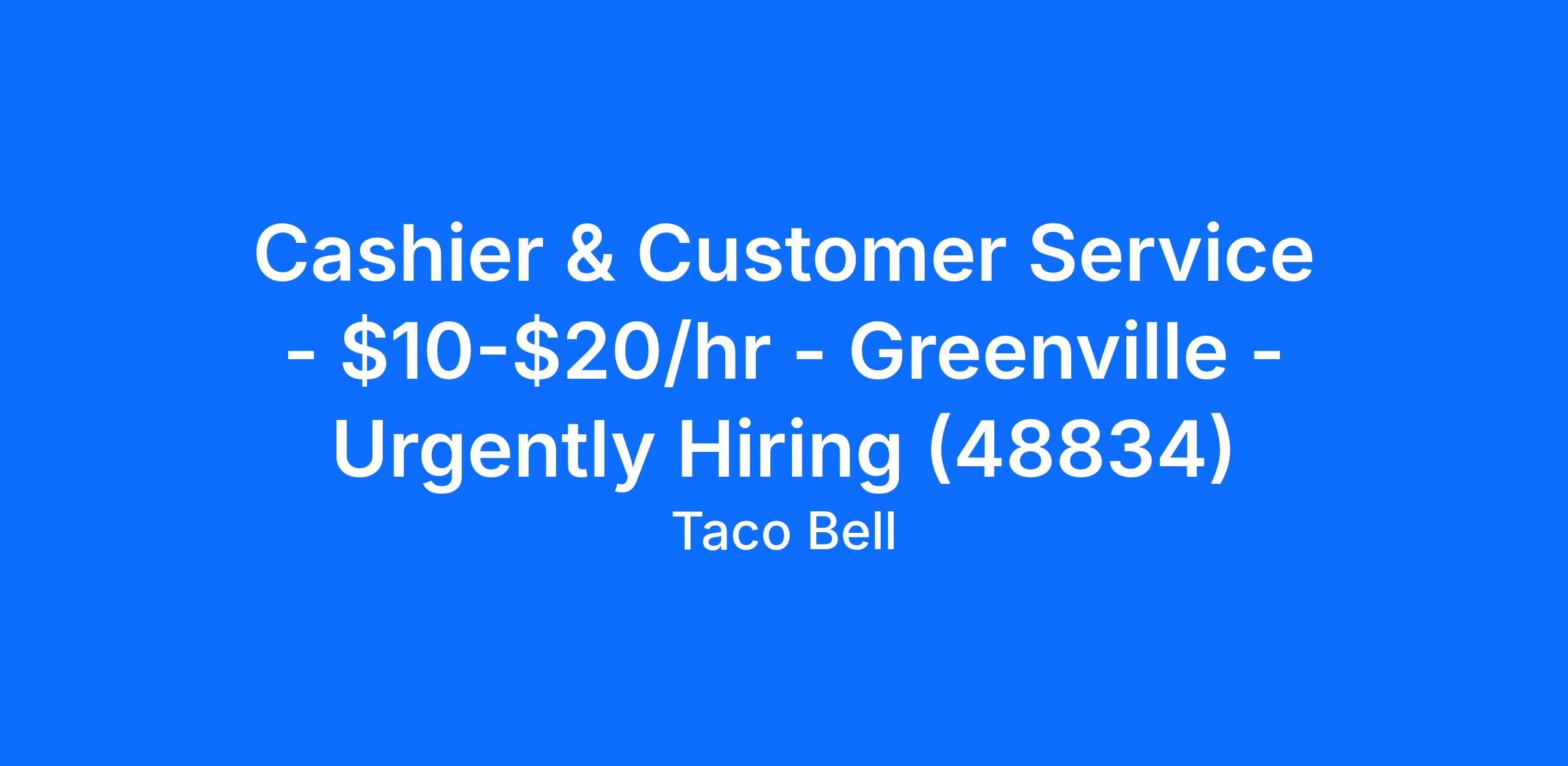 Cashier & Customer Service - $10-$20/hr - Greenville - Urgently Hiring (48834)