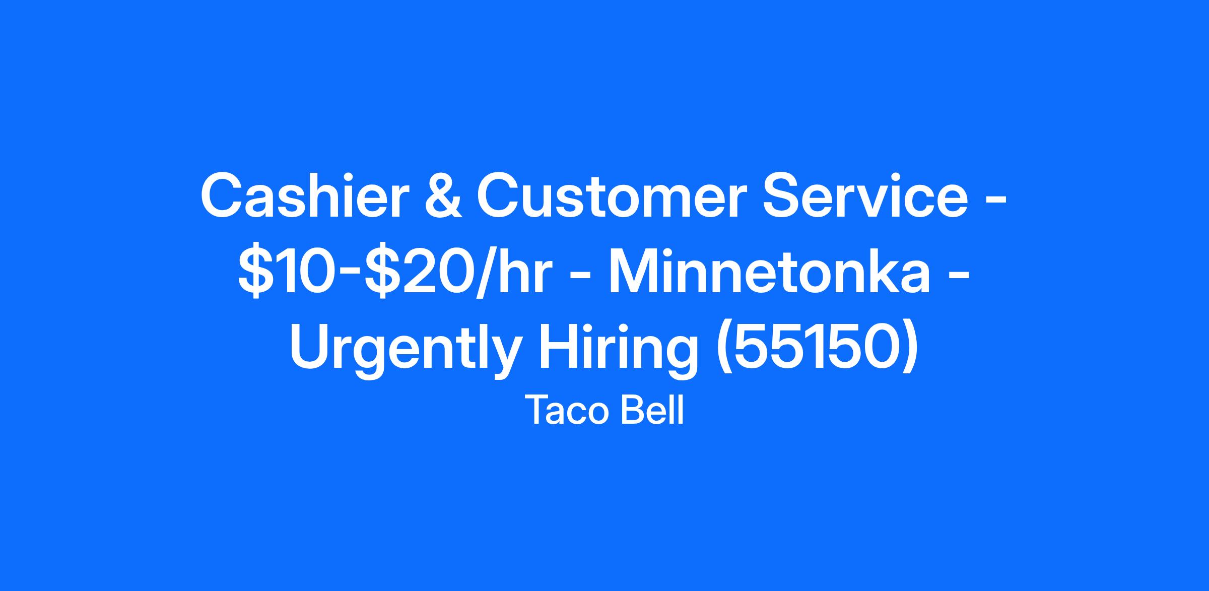 Cashier & Customer Service - $10-$20/hr - Minnetonka - Urgently Hiring (55150)