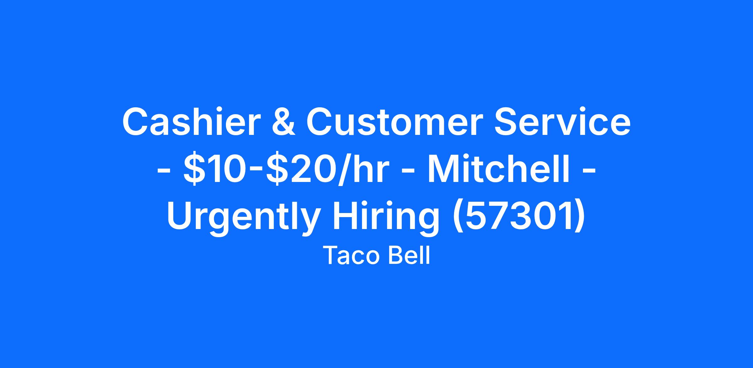 Cashier & Customer Service - $10-$20/hr - Mitchell - Urgently Hiring (57301)