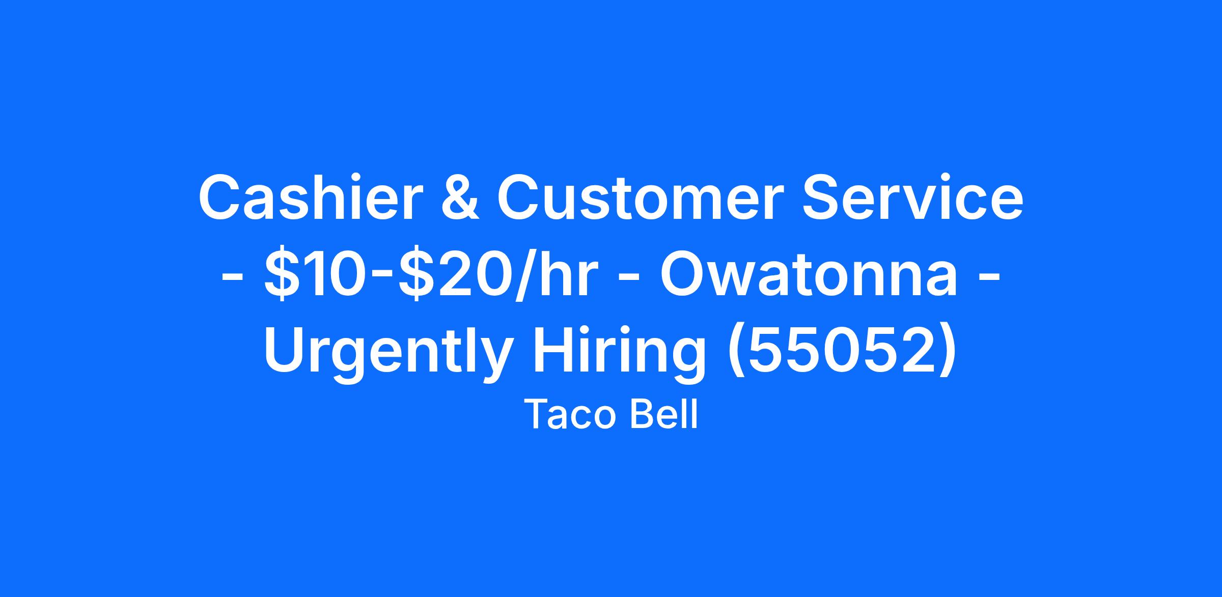 Cashier & Customer Service - $10-$20/hr - Owatonna - Urgently Hiring (55052)