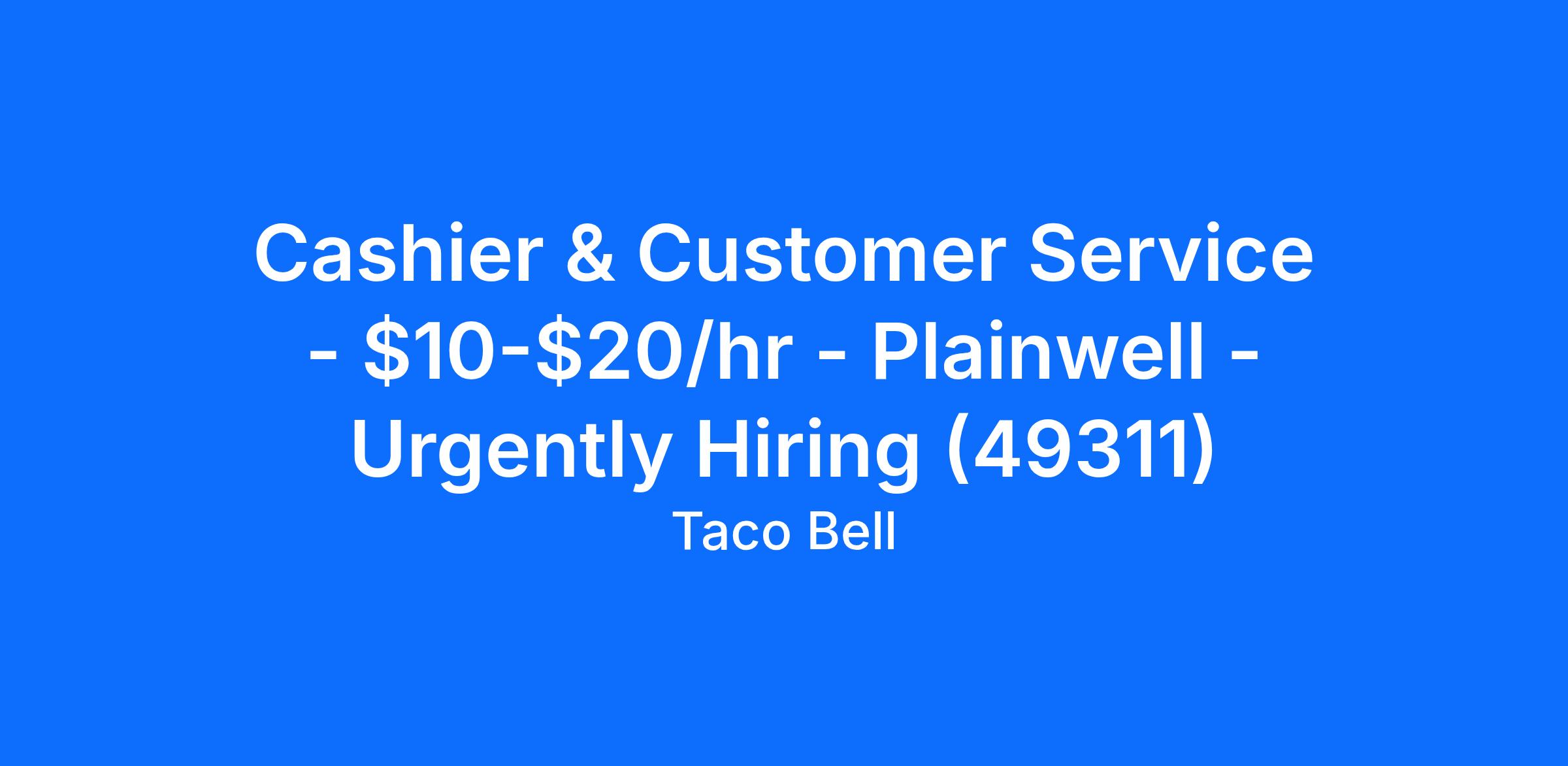 Cashier & Customer Service - $10-$20/hr - Plainwell - Urgently Hiring (49311)