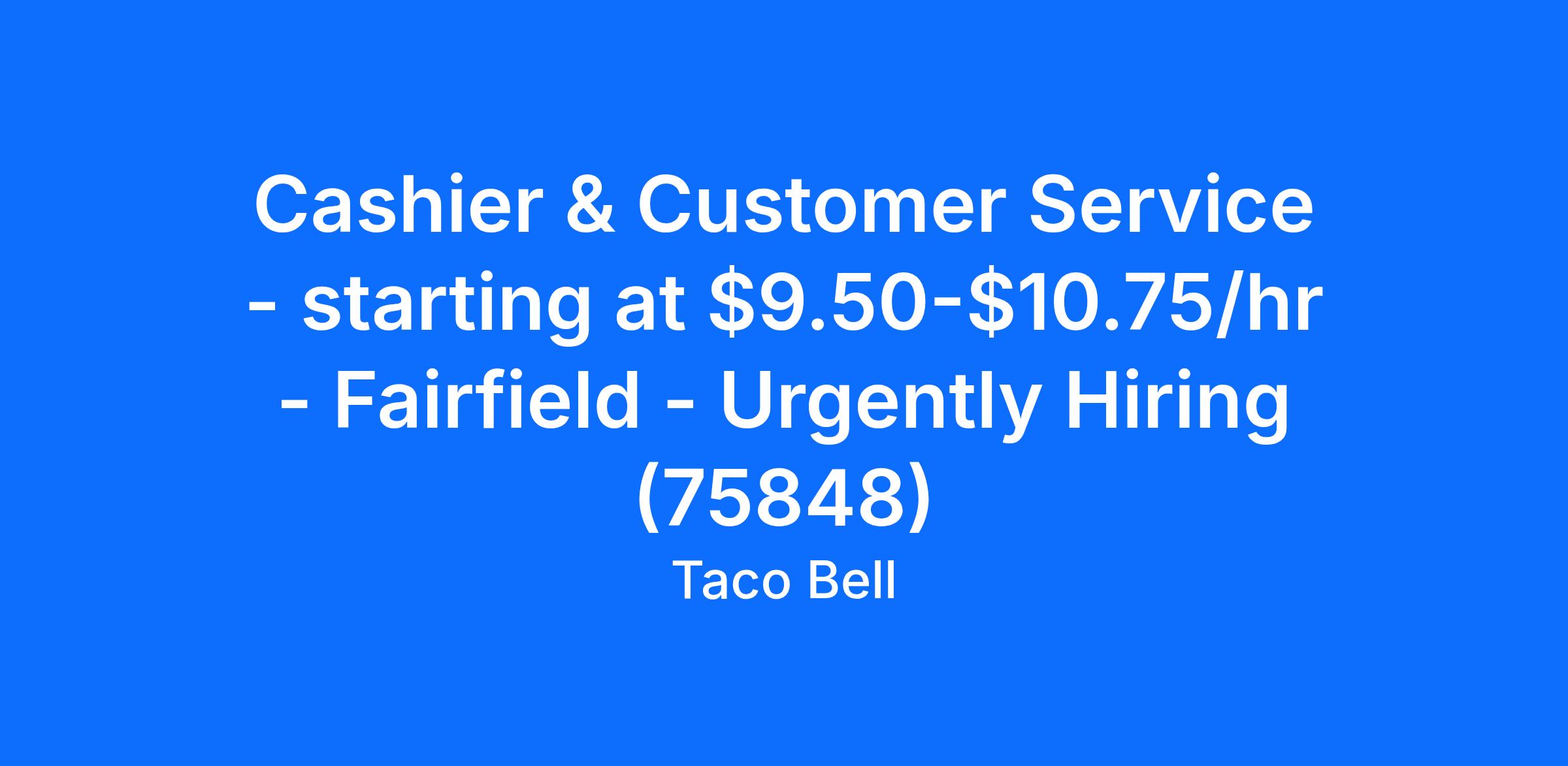 Cashier & Customer Service - starting at $9.50-$10.75/hr - Fairfield - Urgently Hiring (75848)