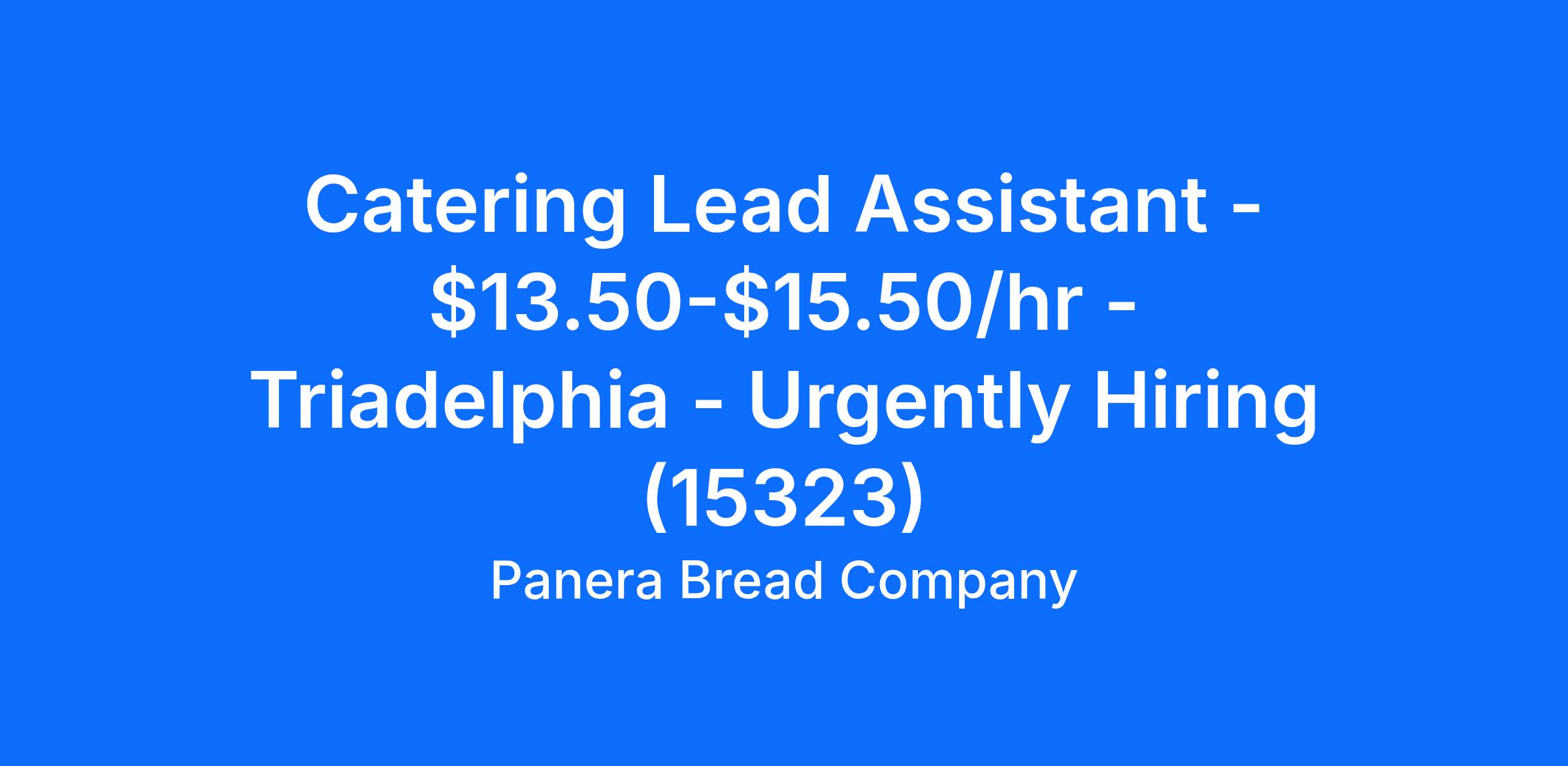 Catering Lead Assistant - $13.50-$15.50/hr - Triadelphia - Urgently Hiring (15323)