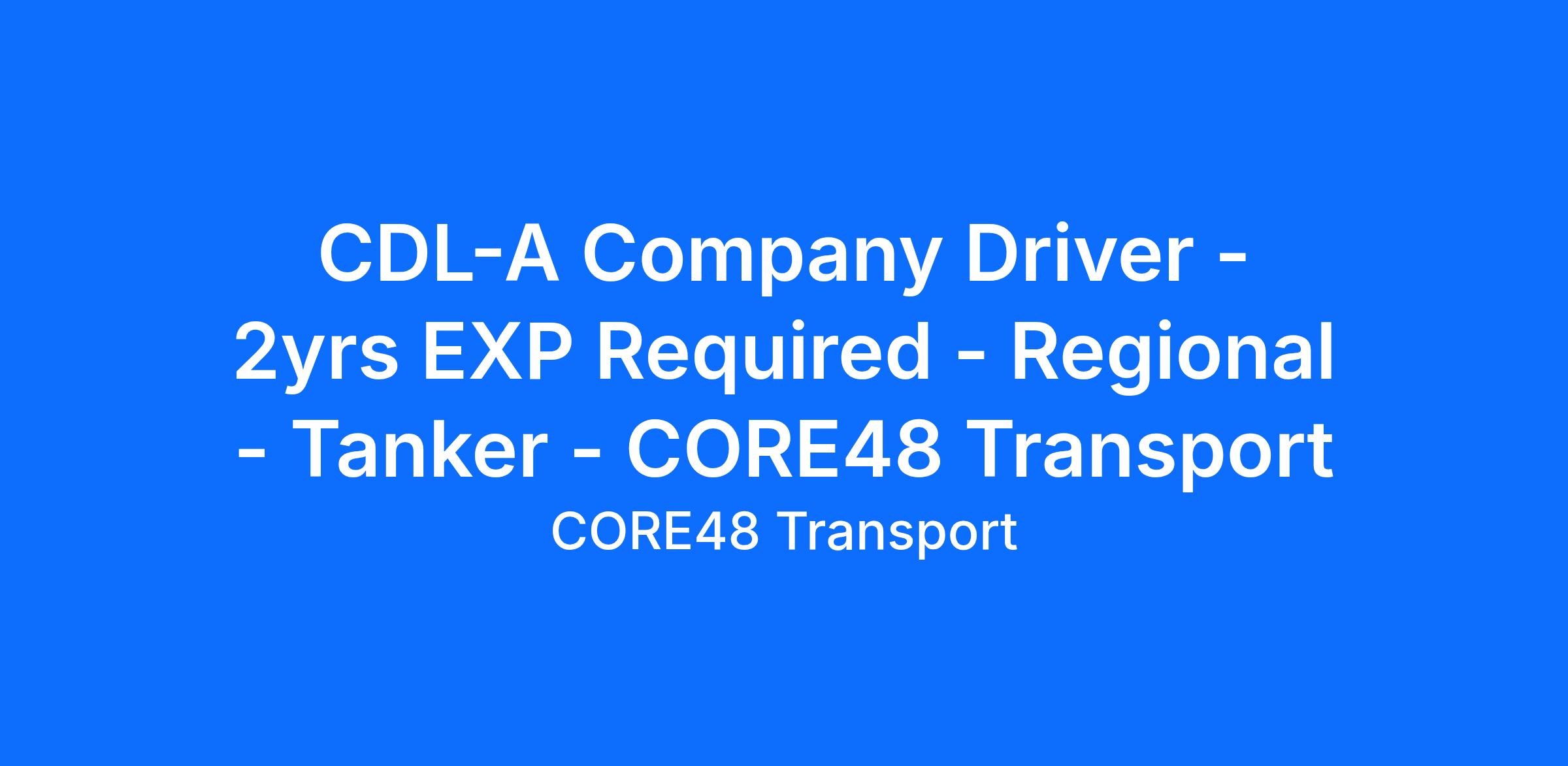CORE48 Transport, LLC is a bold, new name in trucking - we're rebranding what it means to drive with a company that truly cares. As a third-generation transportation leader, we honor nearly 60 years of excellence with a fresh, driver-first approach to Tanker, Reefer, and Dry Van freight. We offer top-notch benefits, a commitment to safety, and a work culture that treats you like family. With modern, safe equipment and personal home time that matters, you'll deliver food-grade liquids in stainless steel tanker trailers and temperature-controlled freight nationwide. Ready for a career where integrity, performance, and respect come first? Join us, and let's drive the future together.