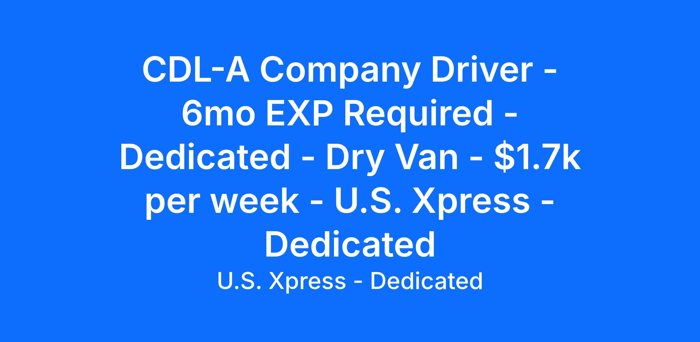 CDL-A Company Driver - 6mo EXP Required - Dedicated - Dry Van - $1.7k per week - U.S. Xpress - Dedicated