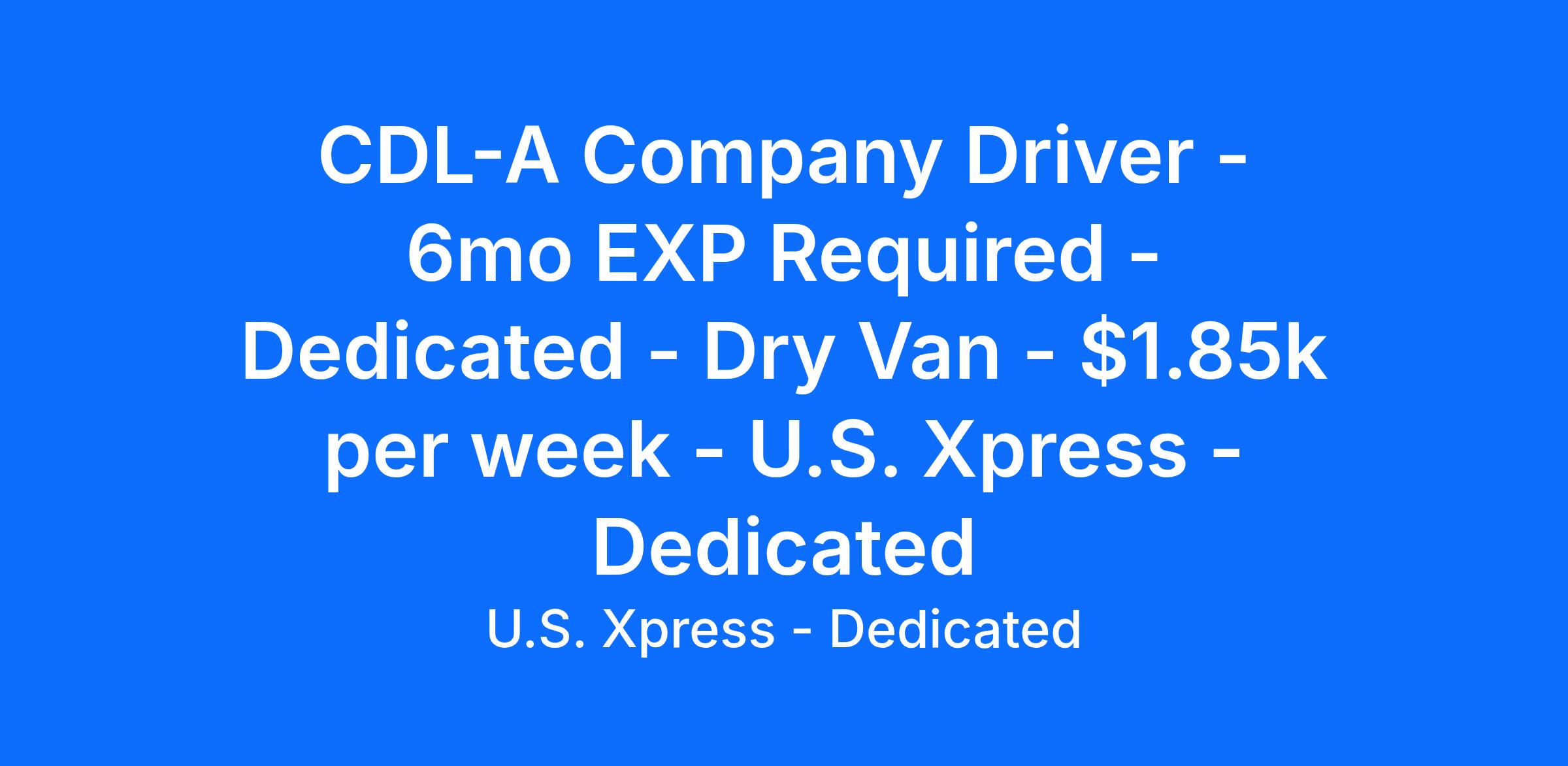 CDL-A Company Driver - 6mo EXP Required - Dedicated - Dry Van - $1.85k per week - U.S. Xpress - Dedicated