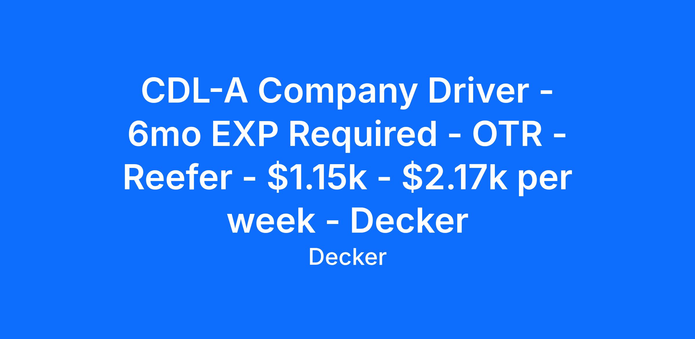 CDL-A Company Driver - 6mo EXP Required - OTR - Reefer - $1.15k - $2.17k per week - Decker