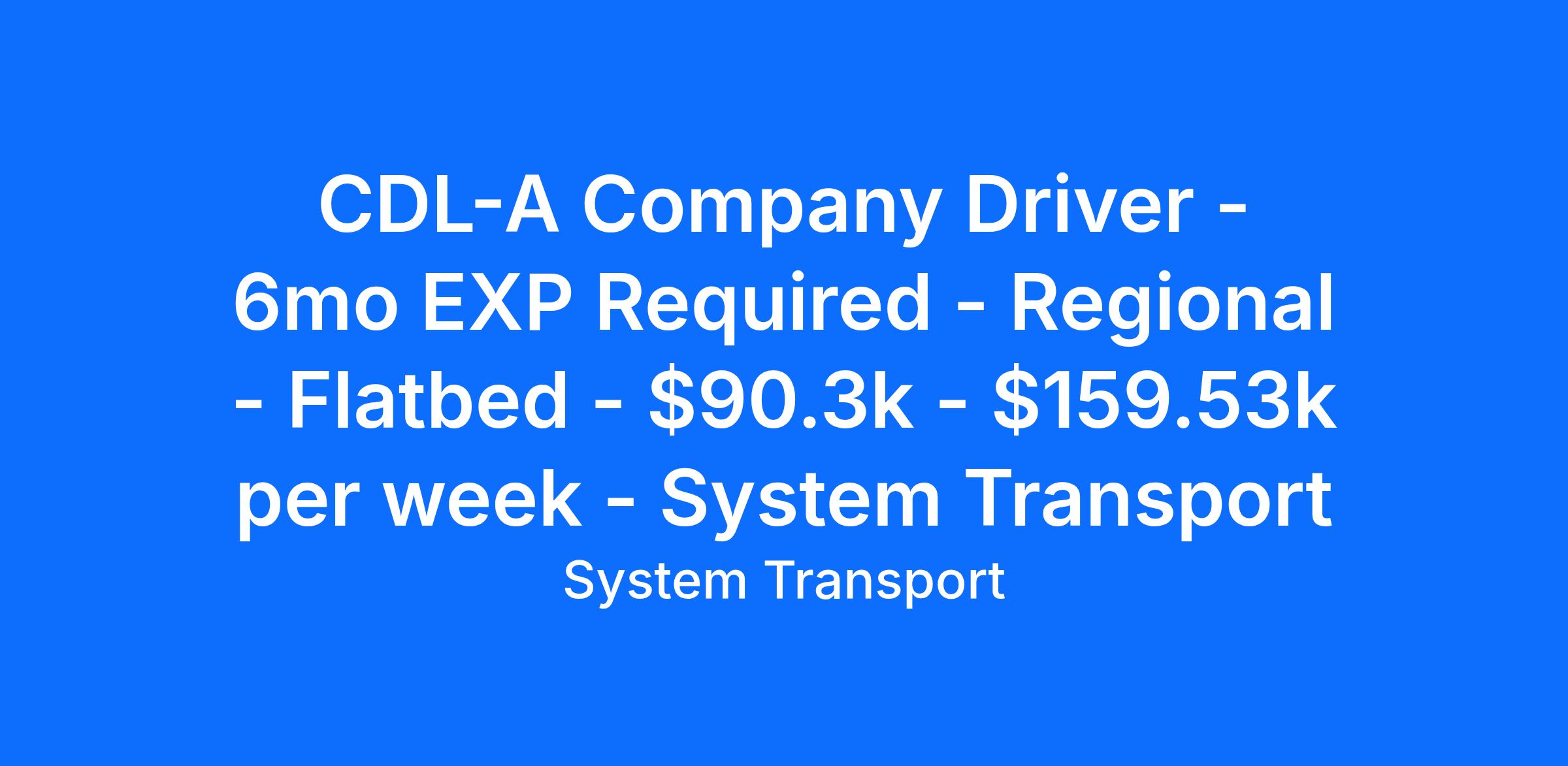 CDL-A Company Driver - 6mo EXP Required - Regional - Flatbed - $90.3k - $159.53k per week - System Transport