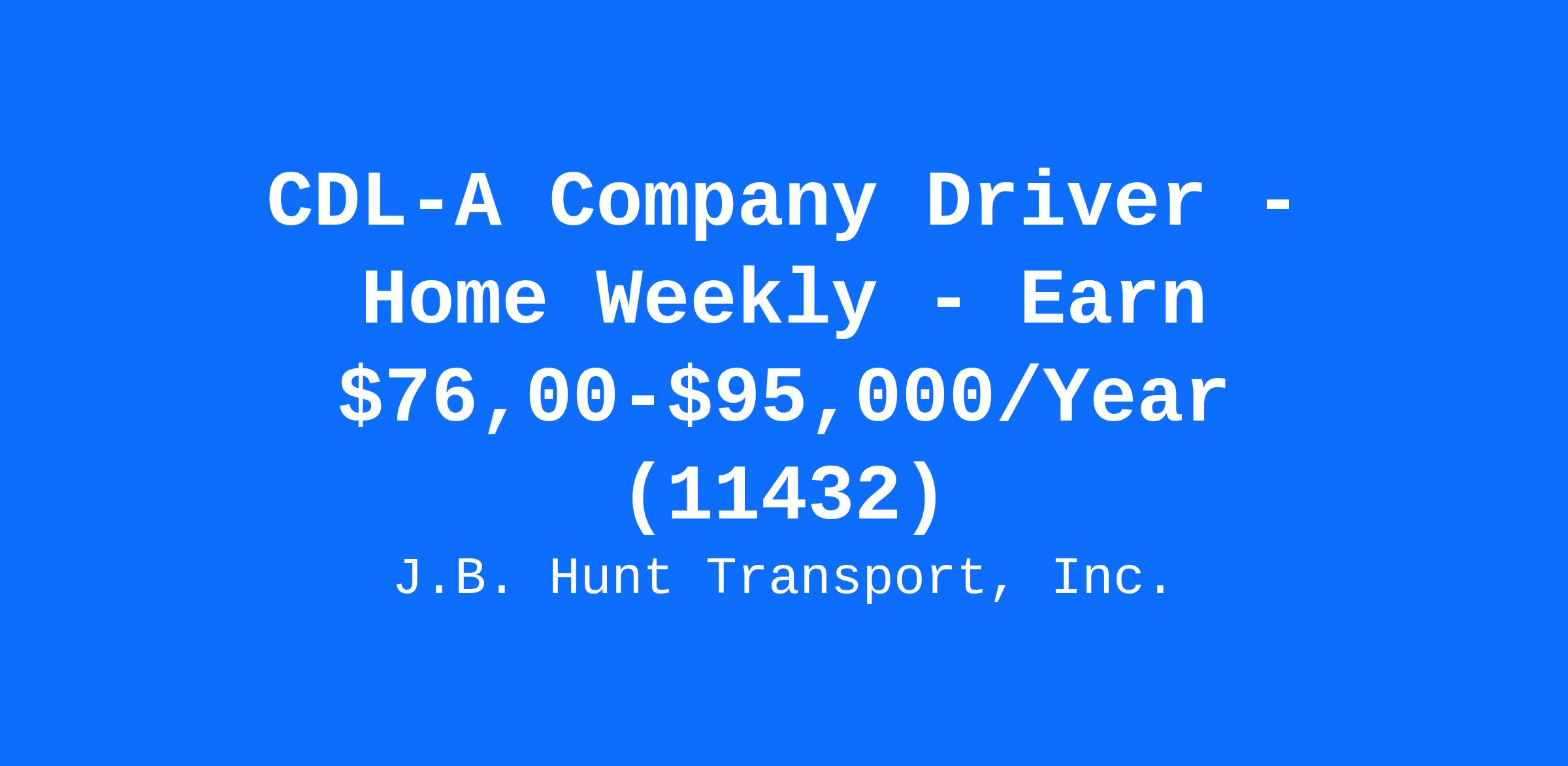 CDL-A Company Driver - Home Weekly - Earn $76,00-$95,000/Year (11432)