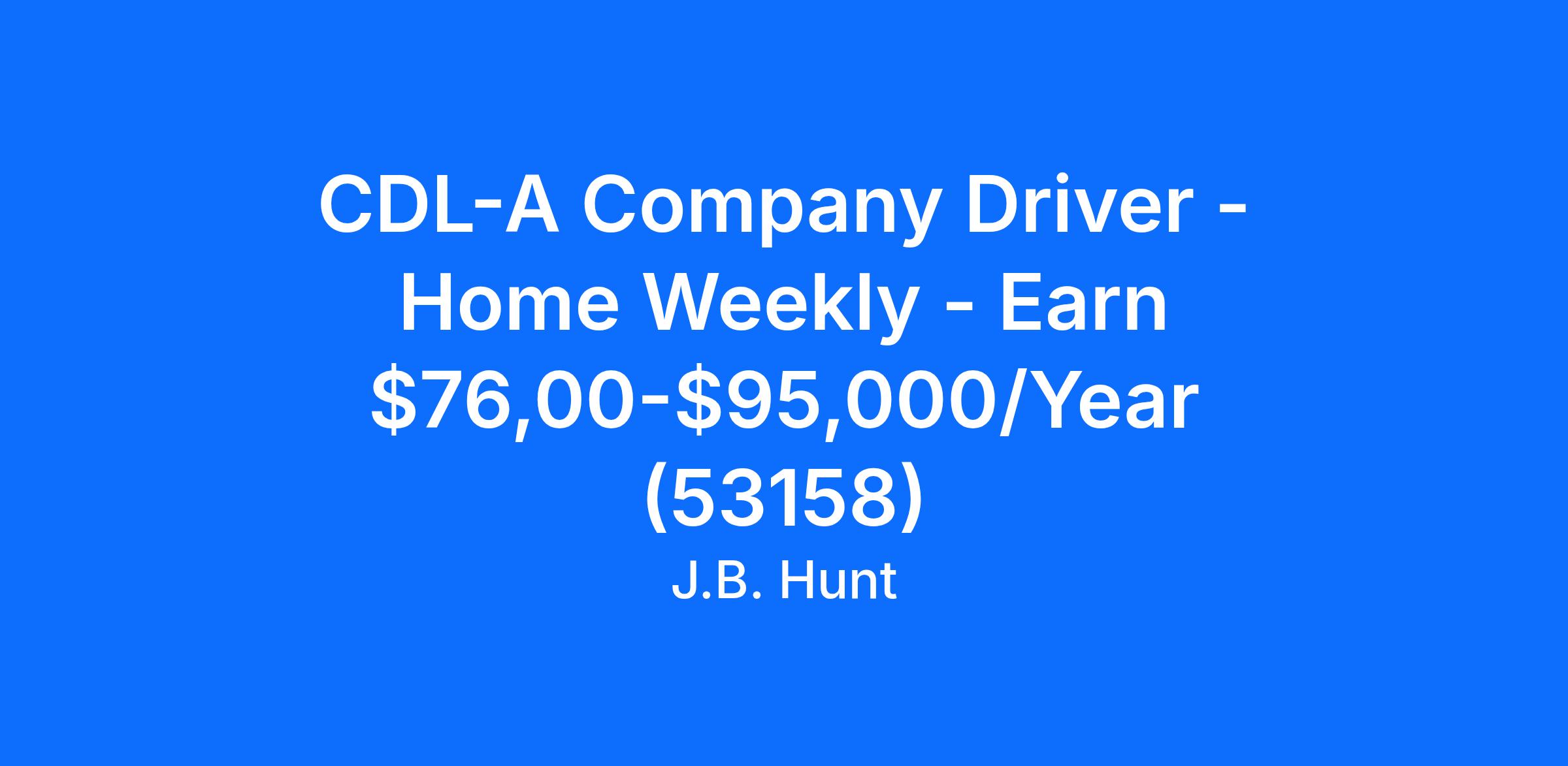 CDL-A Company Driver - Home Weekly - Earn $76,00-$95,000/Year (53158)