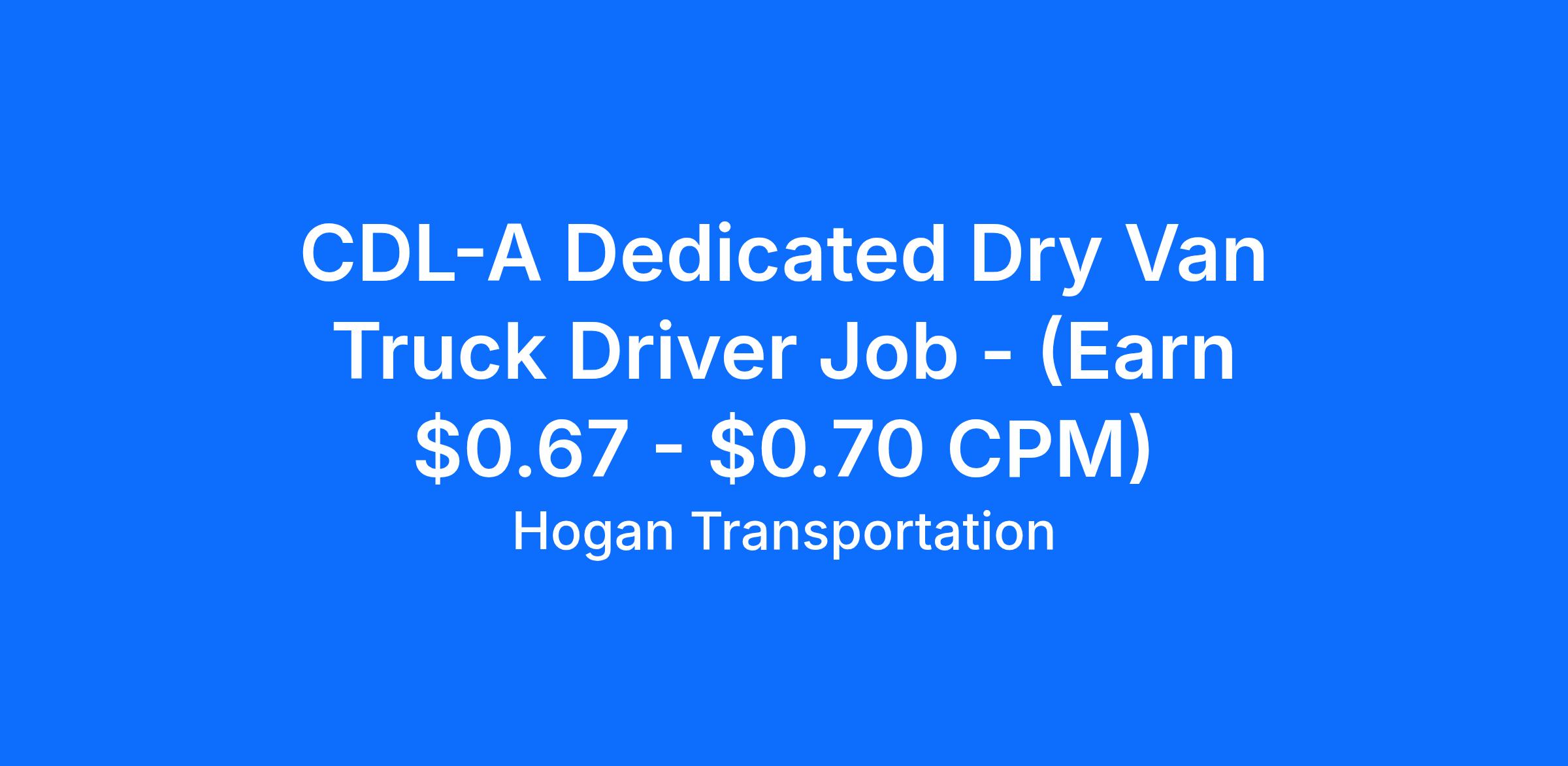 Dedicated CDL-A Truck Drivers Hogan's- Home Daily - Earn $1,570-$1,630 Weekly! Pay & Benefits: - $0.67-$0.70 CPM , Based on Experience*